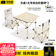 探险者露营桌户外桌椅套装折叠桌便携野餐桌蛋卷桌一桌四椅野营装备全套 【珠光白】方桌+大号折叠椅*2