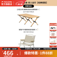 挪客Naturehike星简铝合金蛋卷桌户外露营野营便携式轻量化折叠桌子 方芸大号2人桌椅