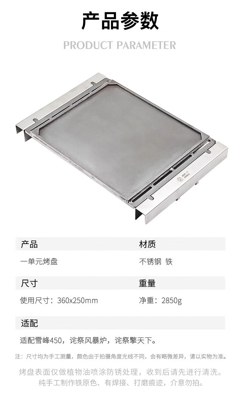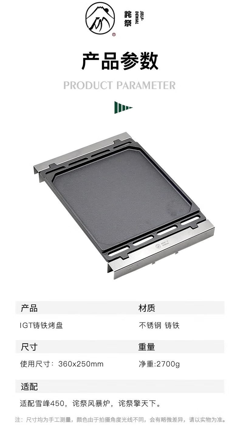 BK詫祭户外IGT一单位铸铁烧烤盘适配暴风炉雪峰GS450铁板烧煎烤盘 gs450用铸铁烤盘