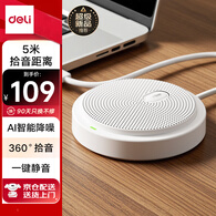 得力会议麦克风 免驱动USB连接AI智能降噪桌面收音麦克风 5米拾音小型便携视频会议全向麦克风MN108