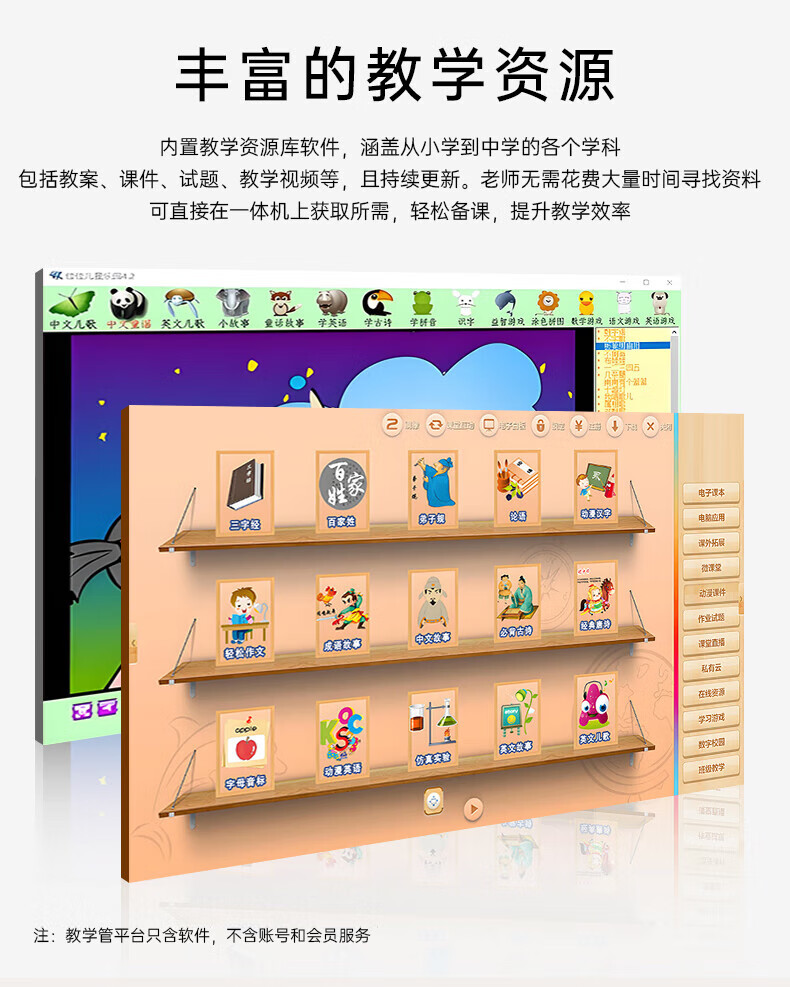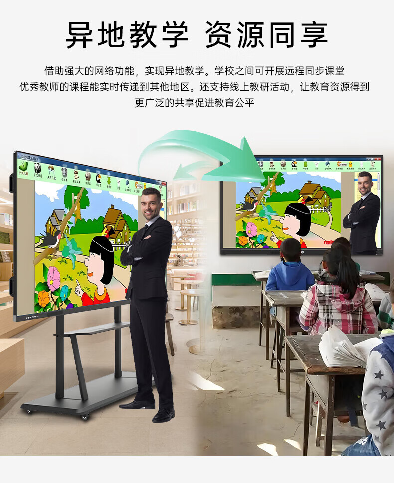 视乐星【实力商家】多媒体教学一体机显示器4K电子白板幼儿园互动培训教育投屏显示屏办公会议平板培训一体机触摸屏 100LCD触摸屏一体机/10-20人+移动推车 【希沃白板】win10-i5/8+256/教学资源