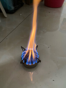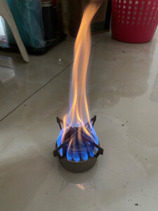 真不错,好玩得很,疫情的时候剩了十几桶75%医用酒精,所以买了个酒精炉,以后能常用了,架子还没用,先把小炉头烧的颜色均匀一点,开炉了,烧蓝了确实很好看