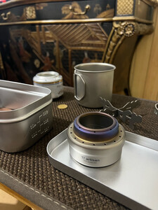 Ti Artisan的这款酒精炉外形设计非常时尚,材质好,做工精细,表面图层光亮,质感好,特别适合户外野炊,自驾游户外煮咖啡,煮牛奶。酒精炉本体设计特别精巧,部分酒精位于隔层内,避免所有酒精暴露于热的火焰下导致蒸发量大,节省酒精消耗。很完美的消费体验!