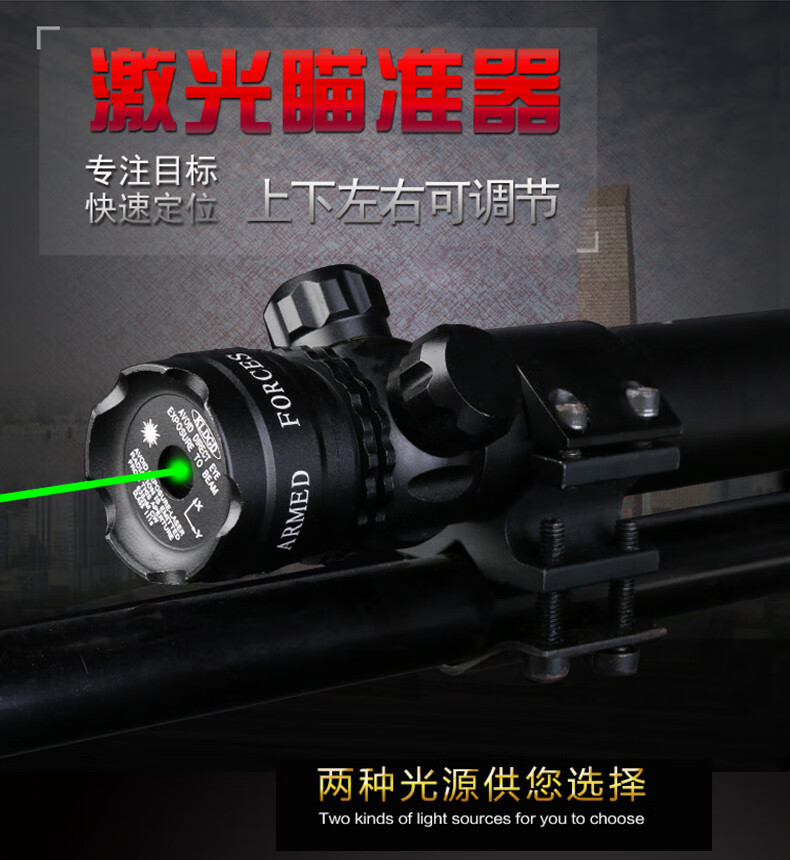 新款可调红绿外线瞄准器红绿激光寻鸟镜激光瞄绿外线瞄准镜 绿激光管夹版二电一充