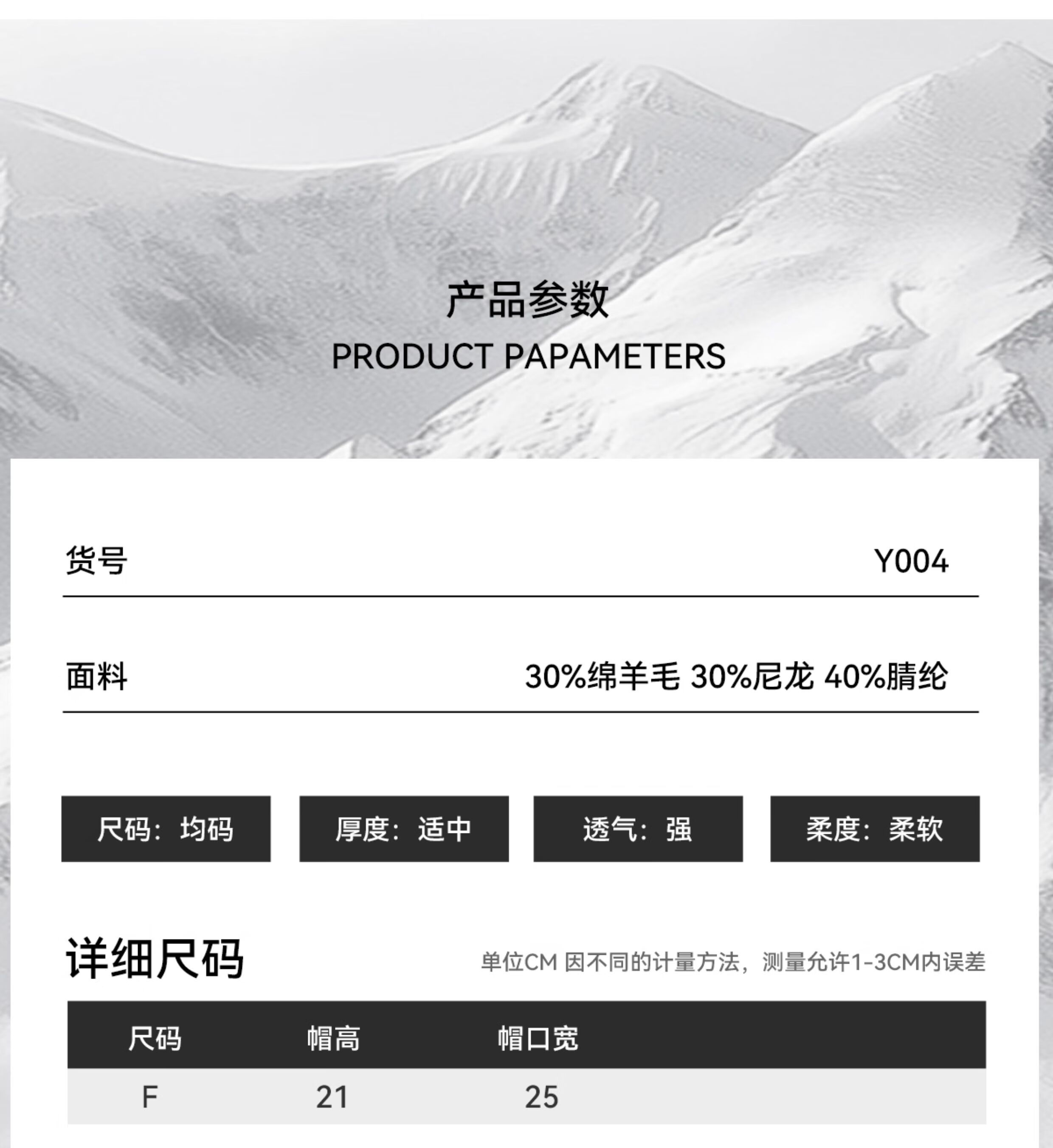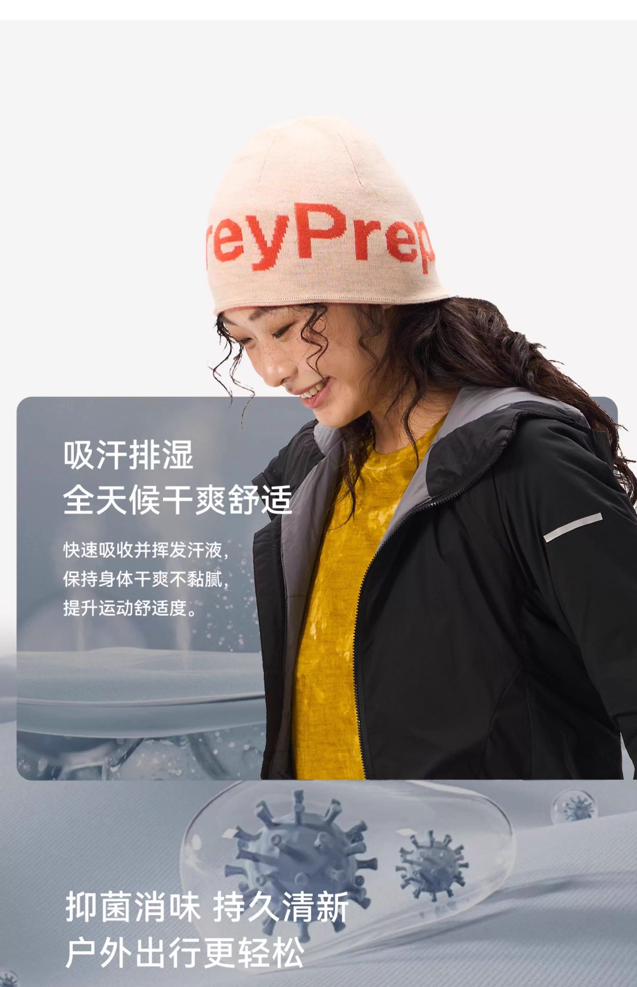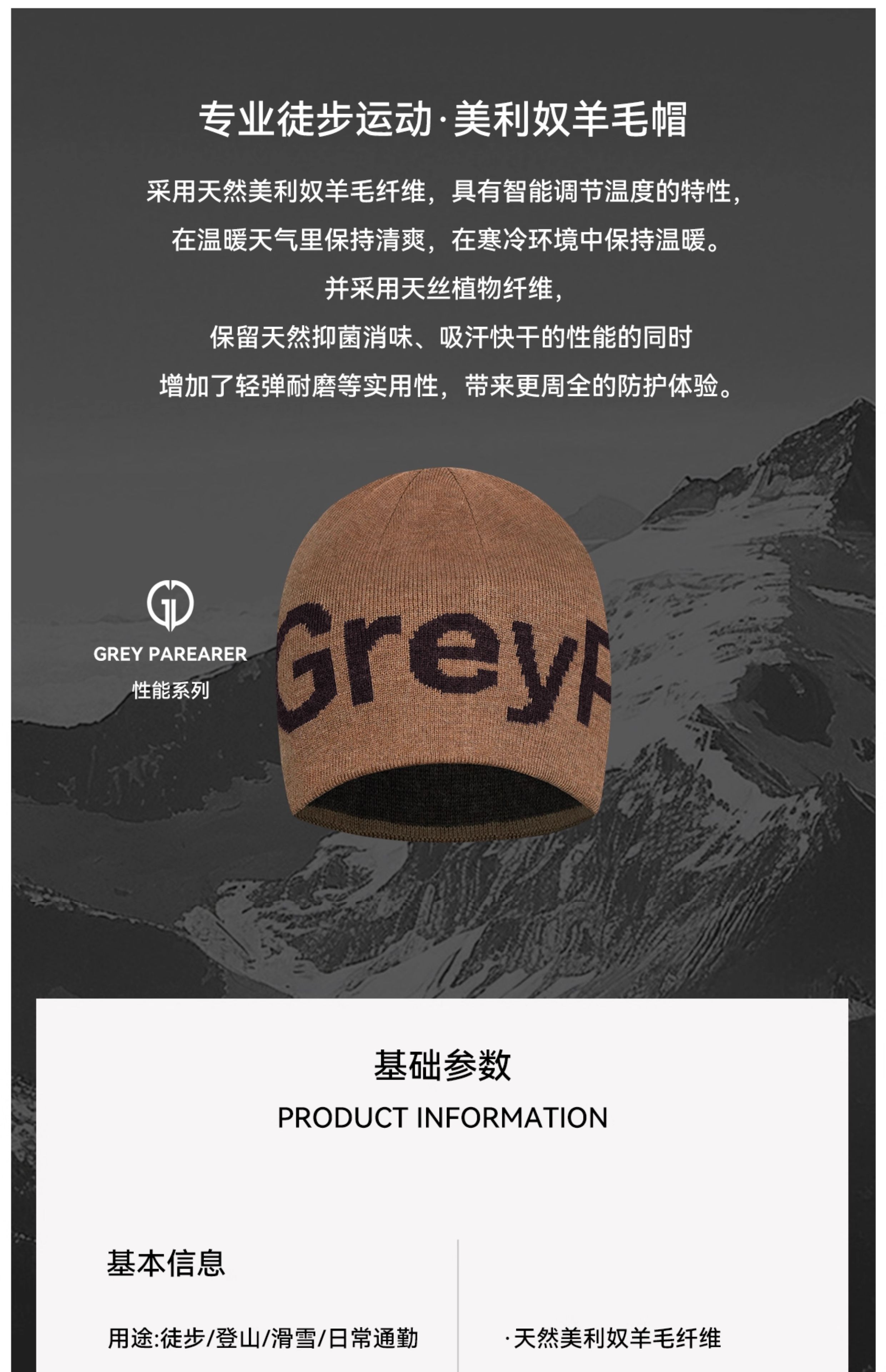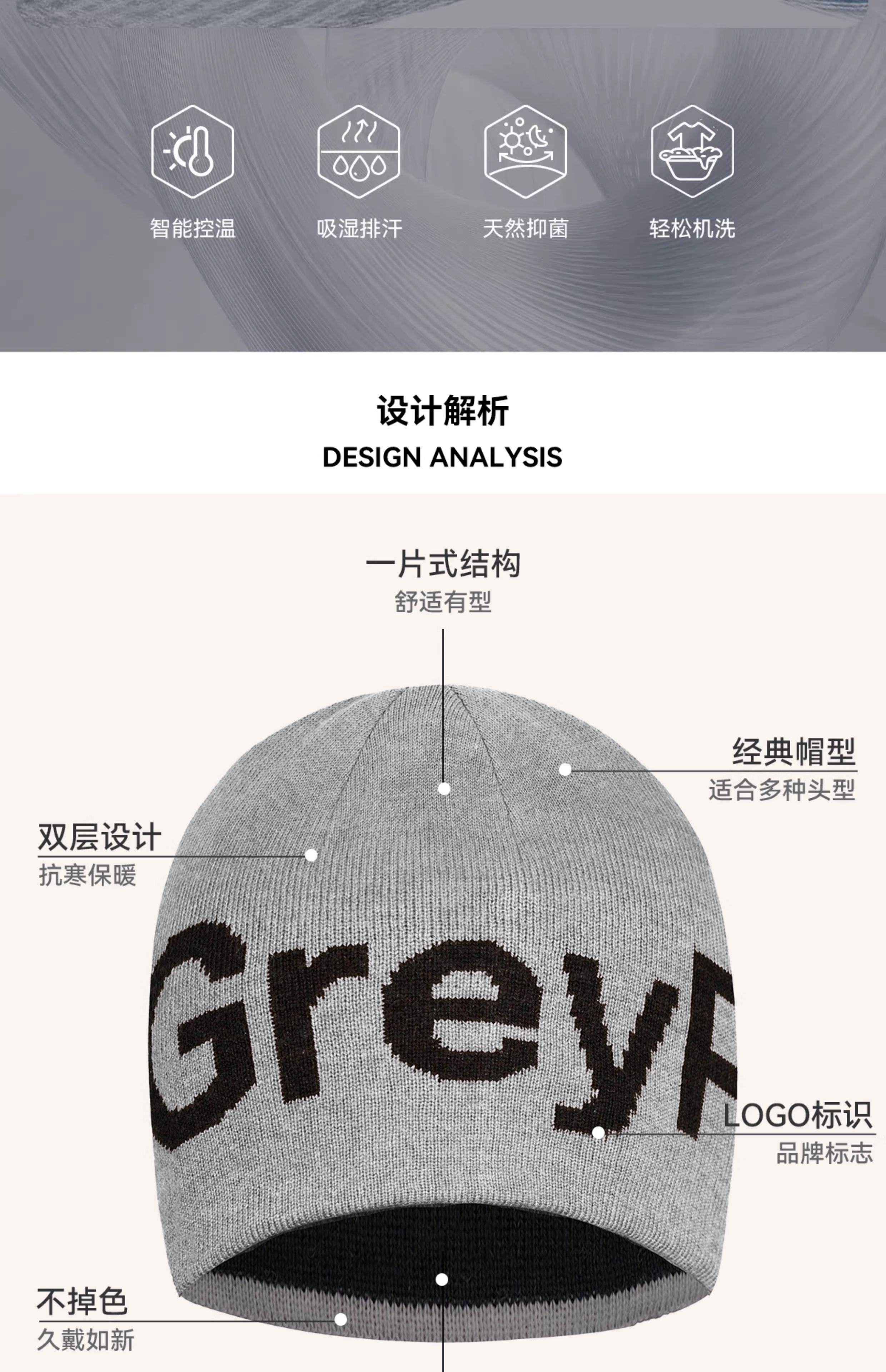 灰壳美利奴羊毛保暖针织帽子透气弹力舒适男女通用 曜石黑