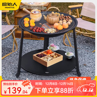 原始人户外蛋卷桌便携式折叠桌野餐桌椅露营装备用品野炊野营套装 120款磨砂黑蛋卷桌-配收纳袋