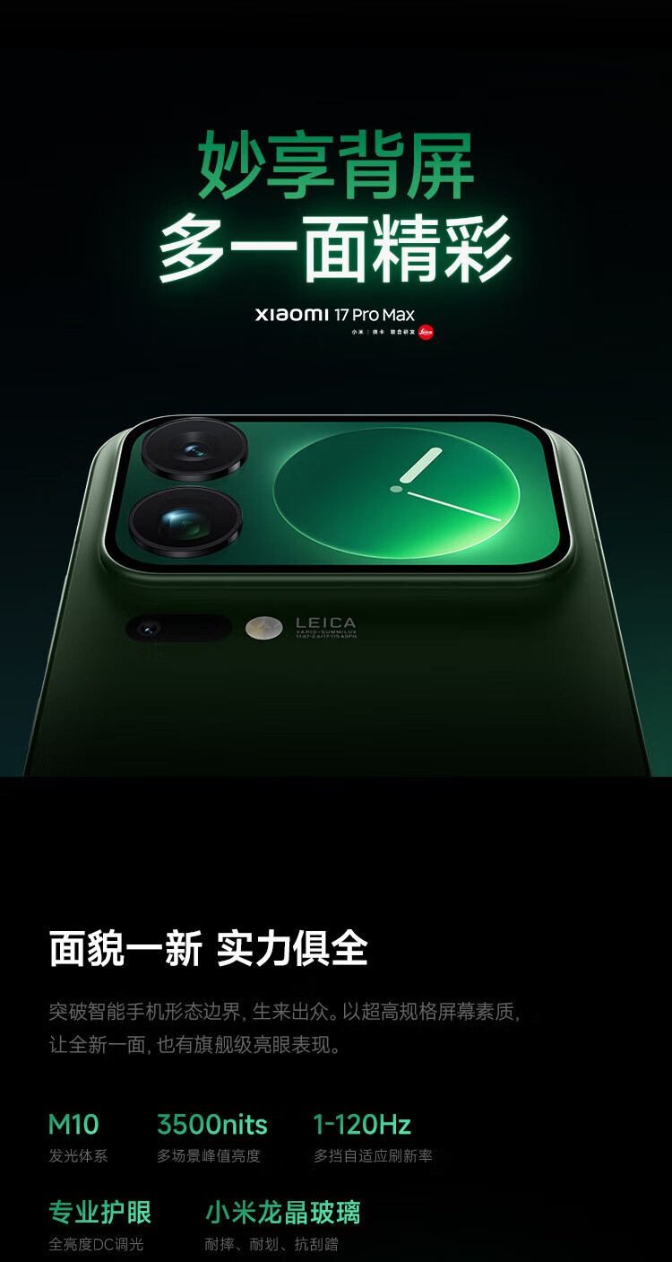小米17Pro Max【全新未激活】妙享背屏 第五代 骁龙 8 至尊版 7500mAh 白色 16GB+1024GB