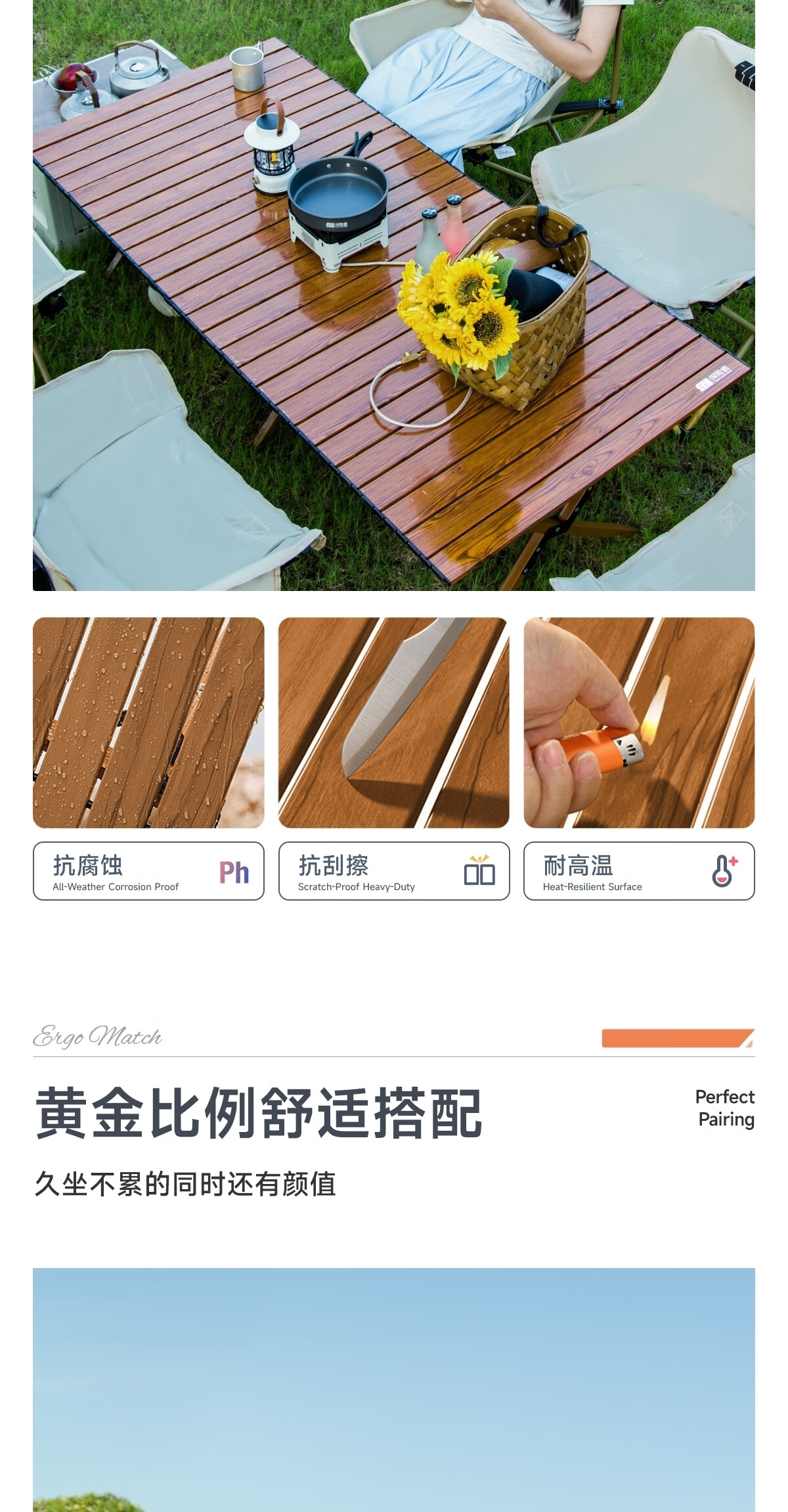兄弟捷登(BRS)Z32/Z31可升降野餐野营 大号6人折叠桌子 铝合金桌 户外野餐 Z32长方桌