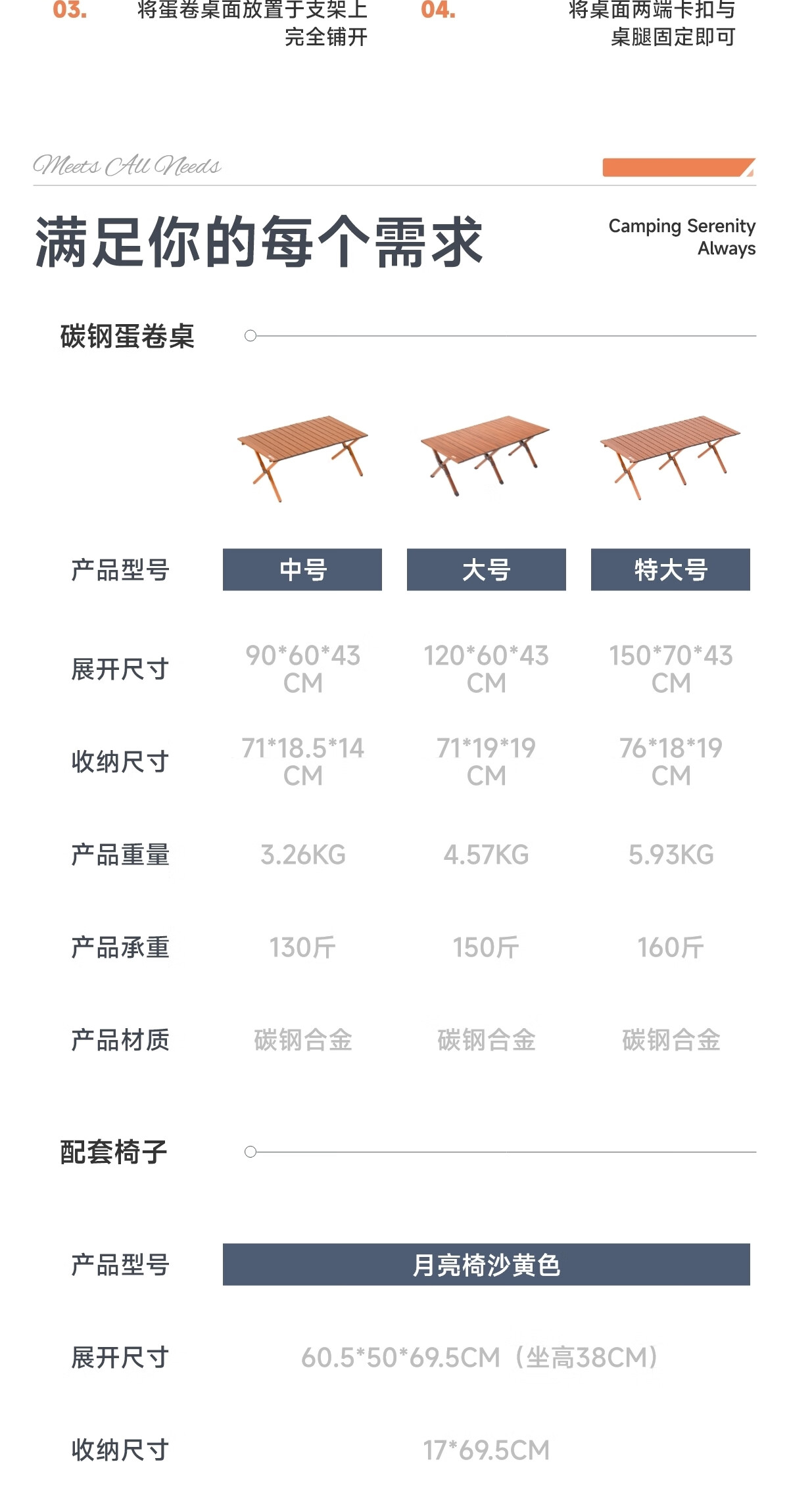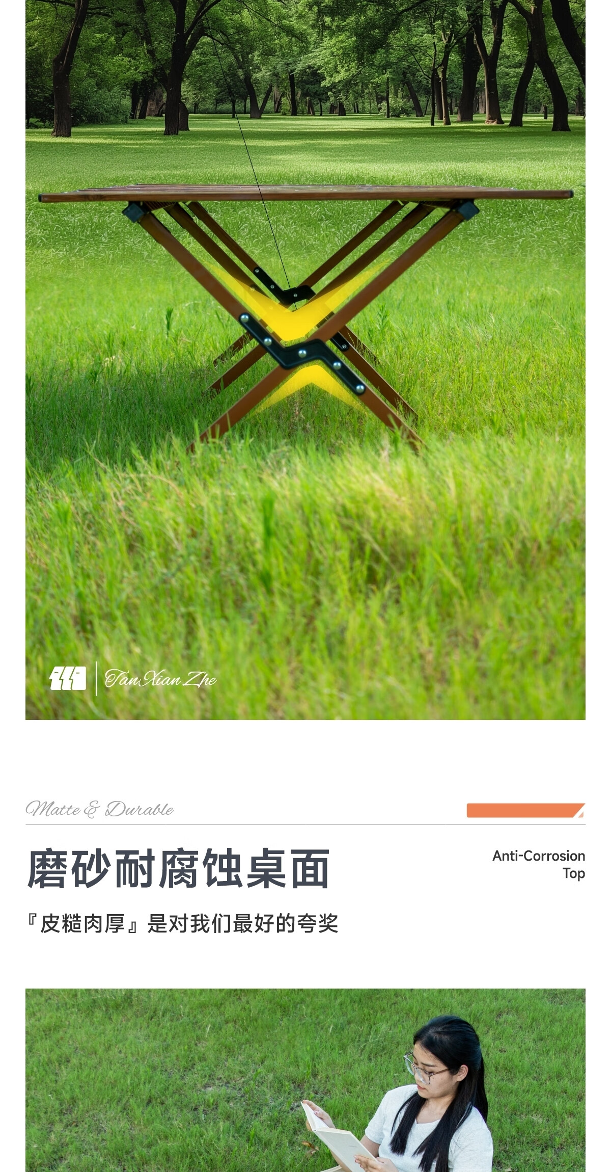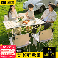 探险者(TAN XIAN ZHE)户外桌椅套装露营折叠桌椅全套折叠椅便携式桌子一体月亮椅野餐 【升级豪华六层】细沙黄月亮椅*2+管套加固