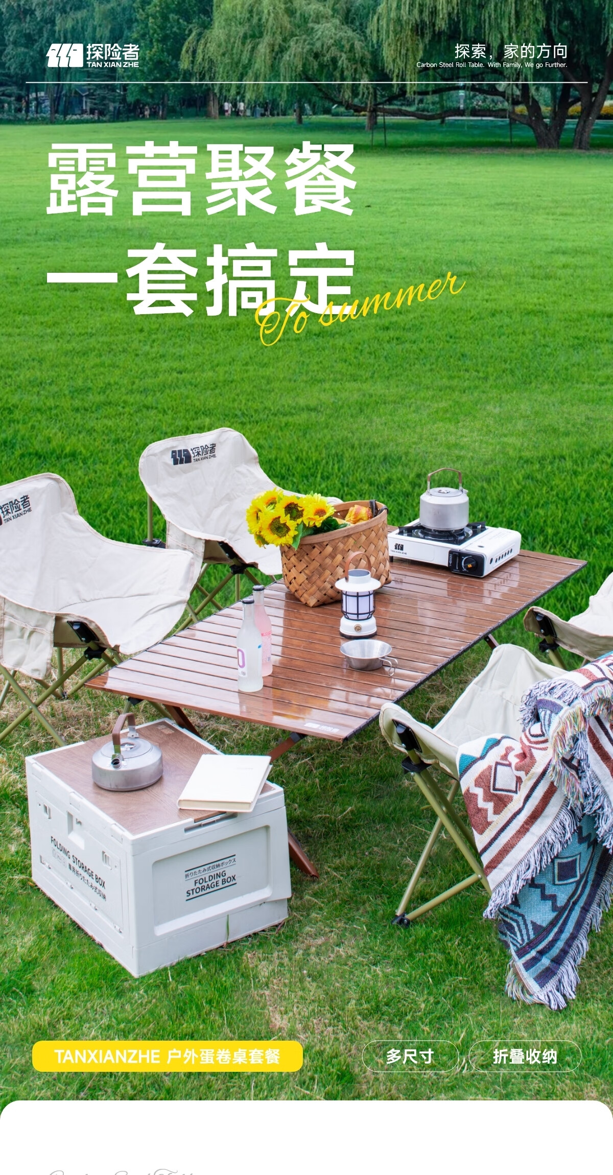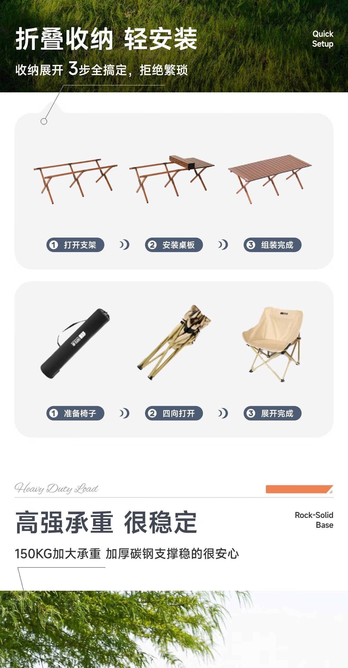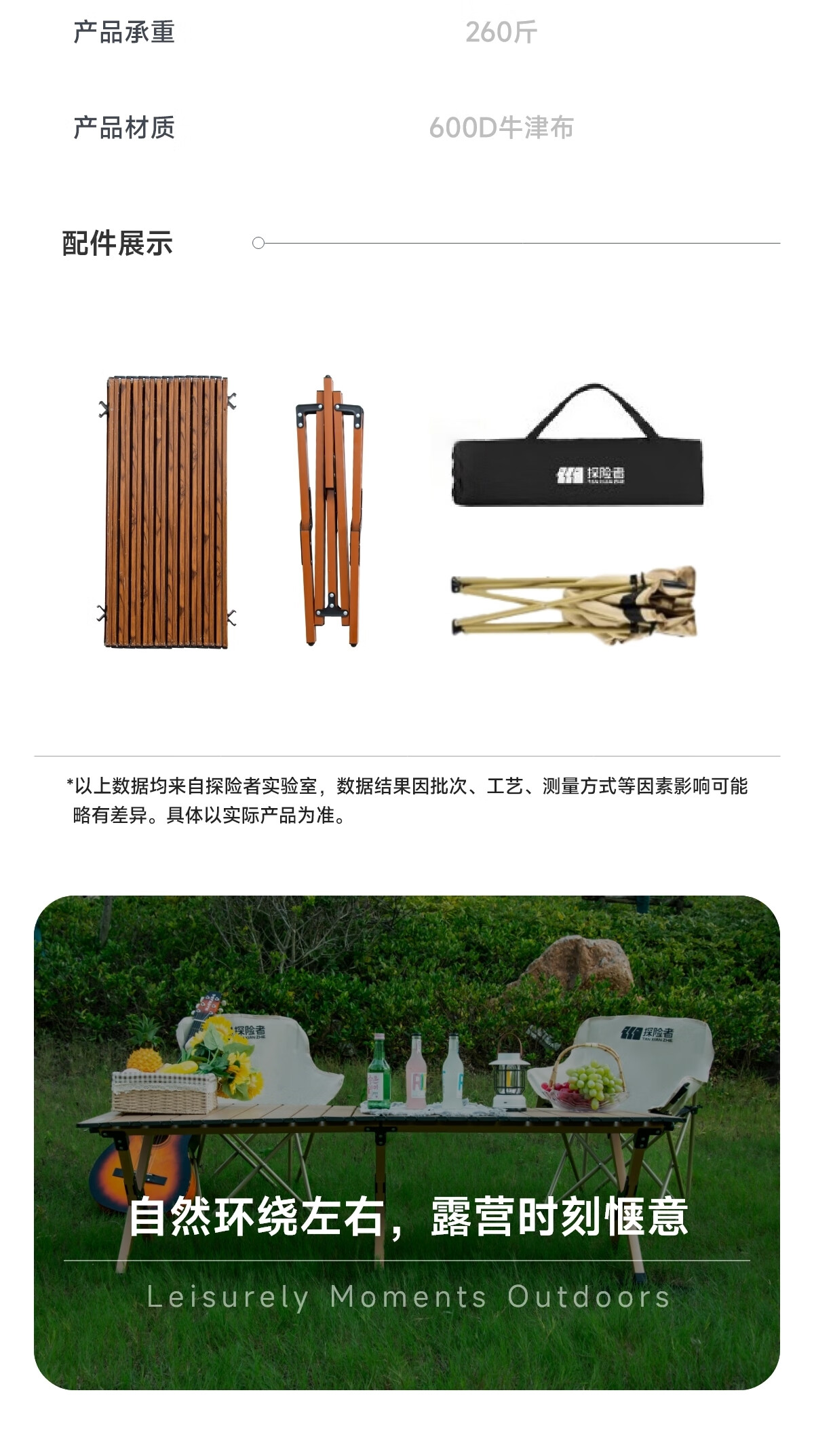 探险者露营桌户外桌椅套装折叠桌便携野餐桌蛋卷桌一桌四椅野营装备全套 【珠光白】长桌+大号折叠椅*4