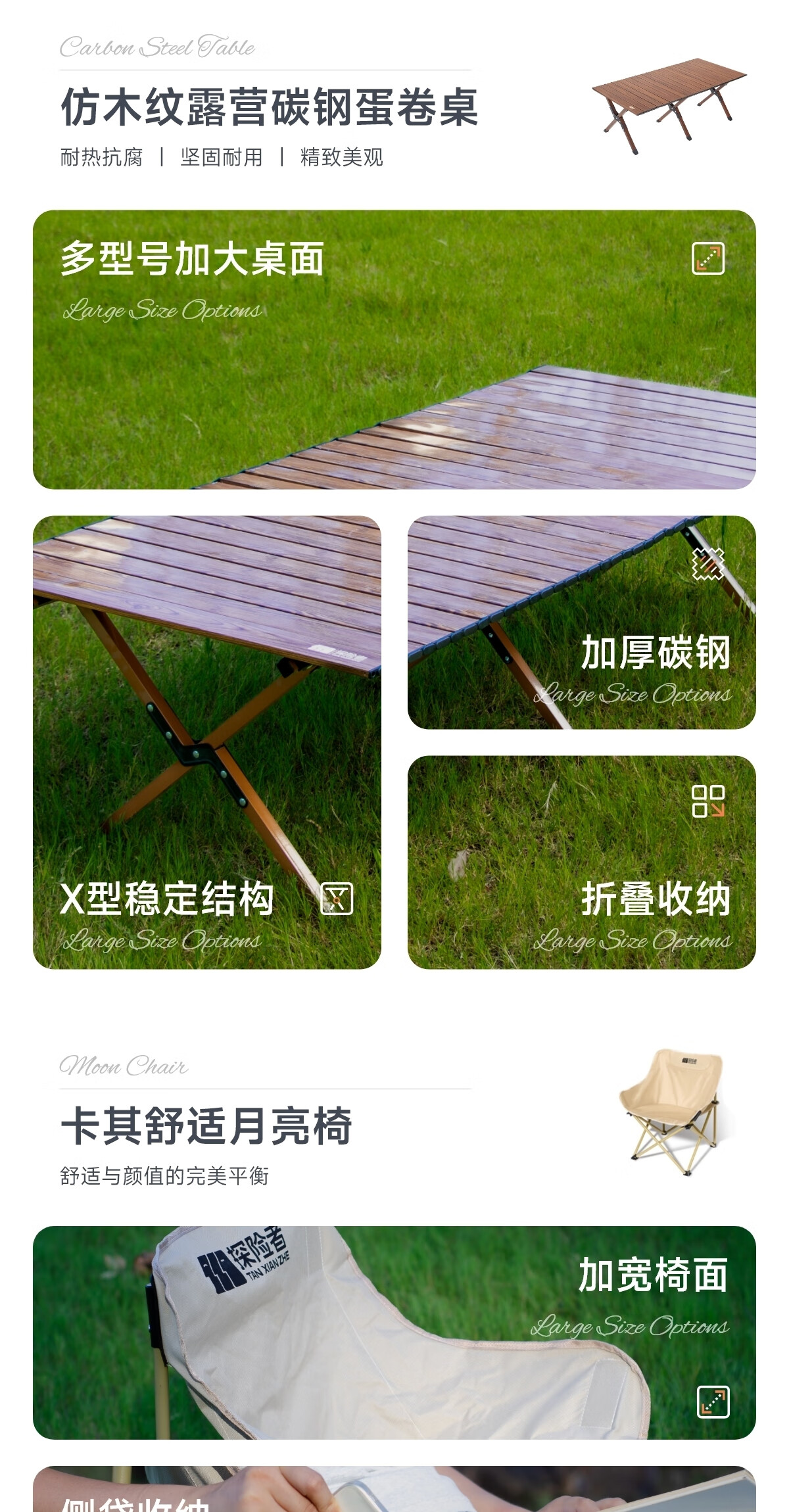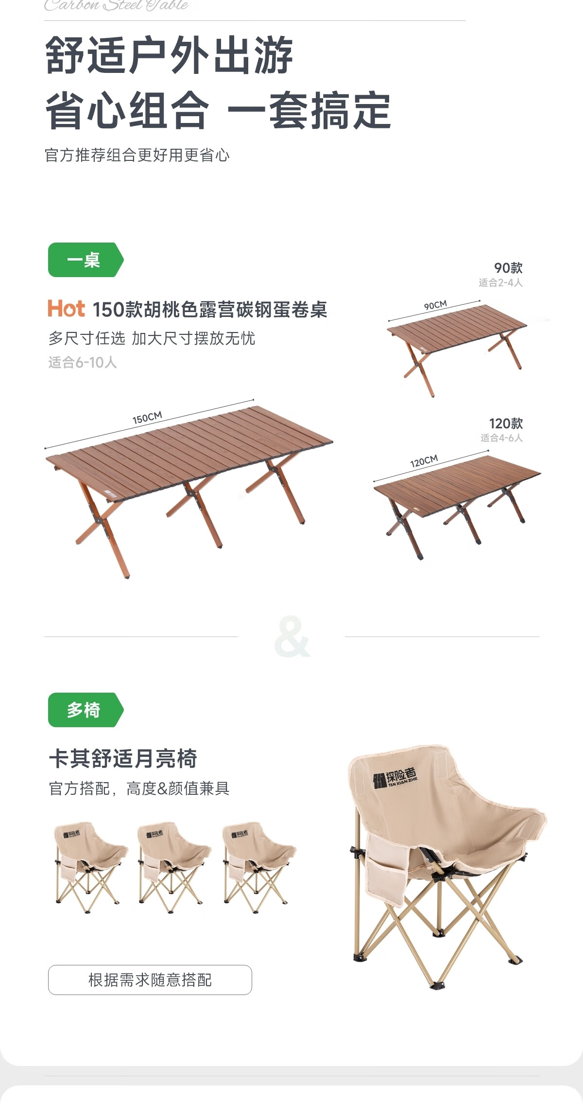 探险者户外折叠椅套装一桌四椅露营装备全套七件套便携式折叠桌椅月亮椅 60款胡桃蛋卷桌+黑色月亮椅*2