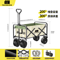 探险者户外露营车野餐车露营装备推车折叠方便露营推车营地车摆摊推车 米白拼绿-越野轮【轮宽7cm】