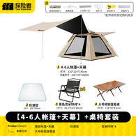 探险者帐篷户外折叠便携式野营帐过夜防雨黑胶防晒帐篷野外露营装备全套 【4-6人帐篷天幕】+蛋卷桌五件套