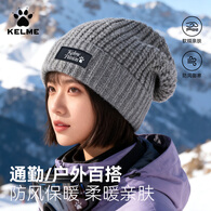 卡尔美(KELME)帽子女2025秋冬季新款堆堆帽包头显脸小冷帽防风保暖针织毛线帽子