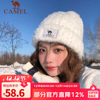 骆驼(CAMEL)秋冬羊毛针织帽女显脸小百搭防寒护耳冷帽大头围针织帽子防寒 【羊毛纱针织】白色,133CP15060