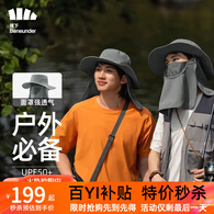 蕉下(beneunder)防晒帽男士遮阳帽女士夏季防紫外线太阳帽渔夫帽户外钓鱼帽可拆卸 【面罩可拆卸】烟熏灰