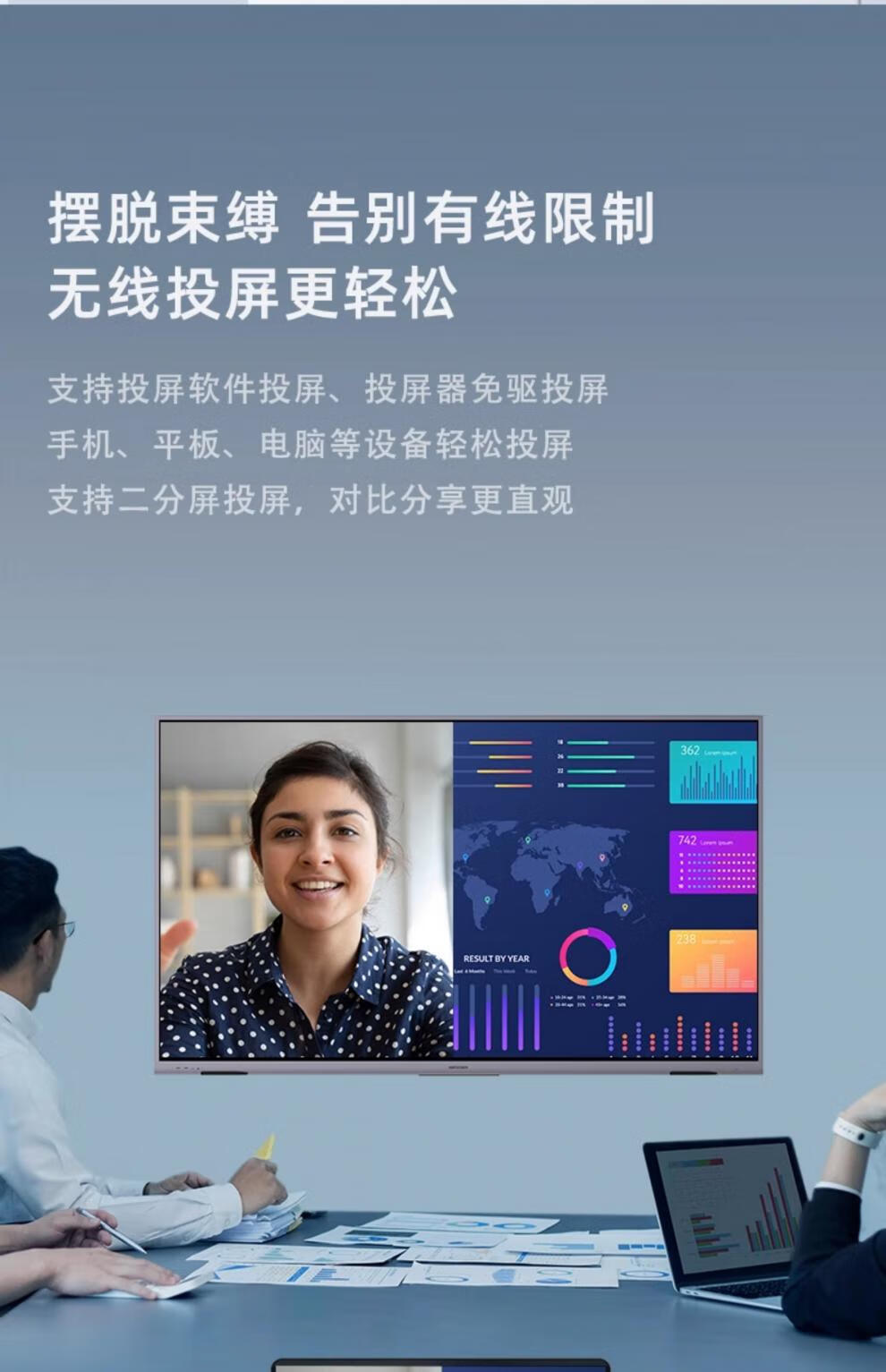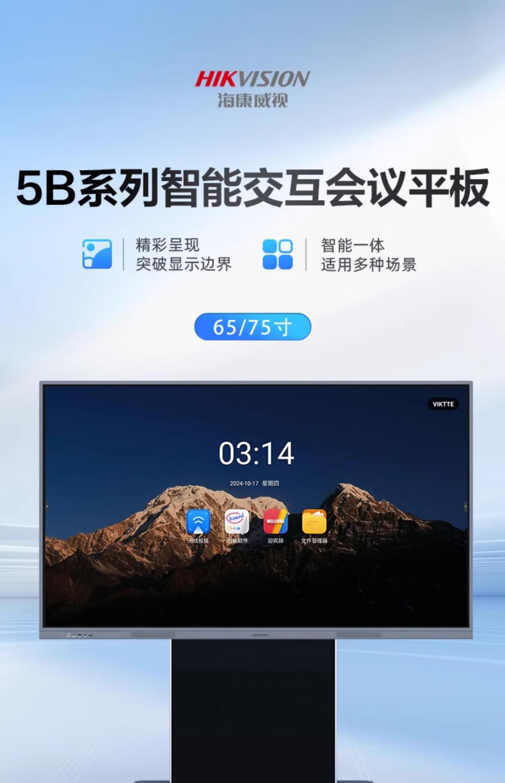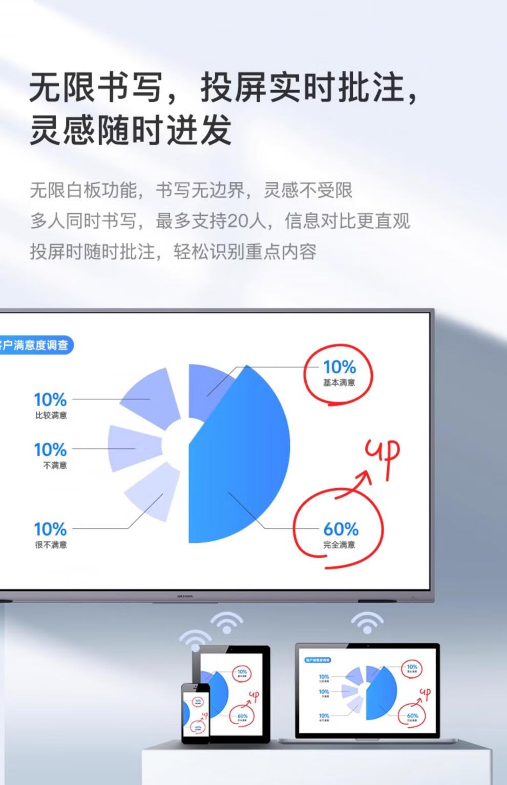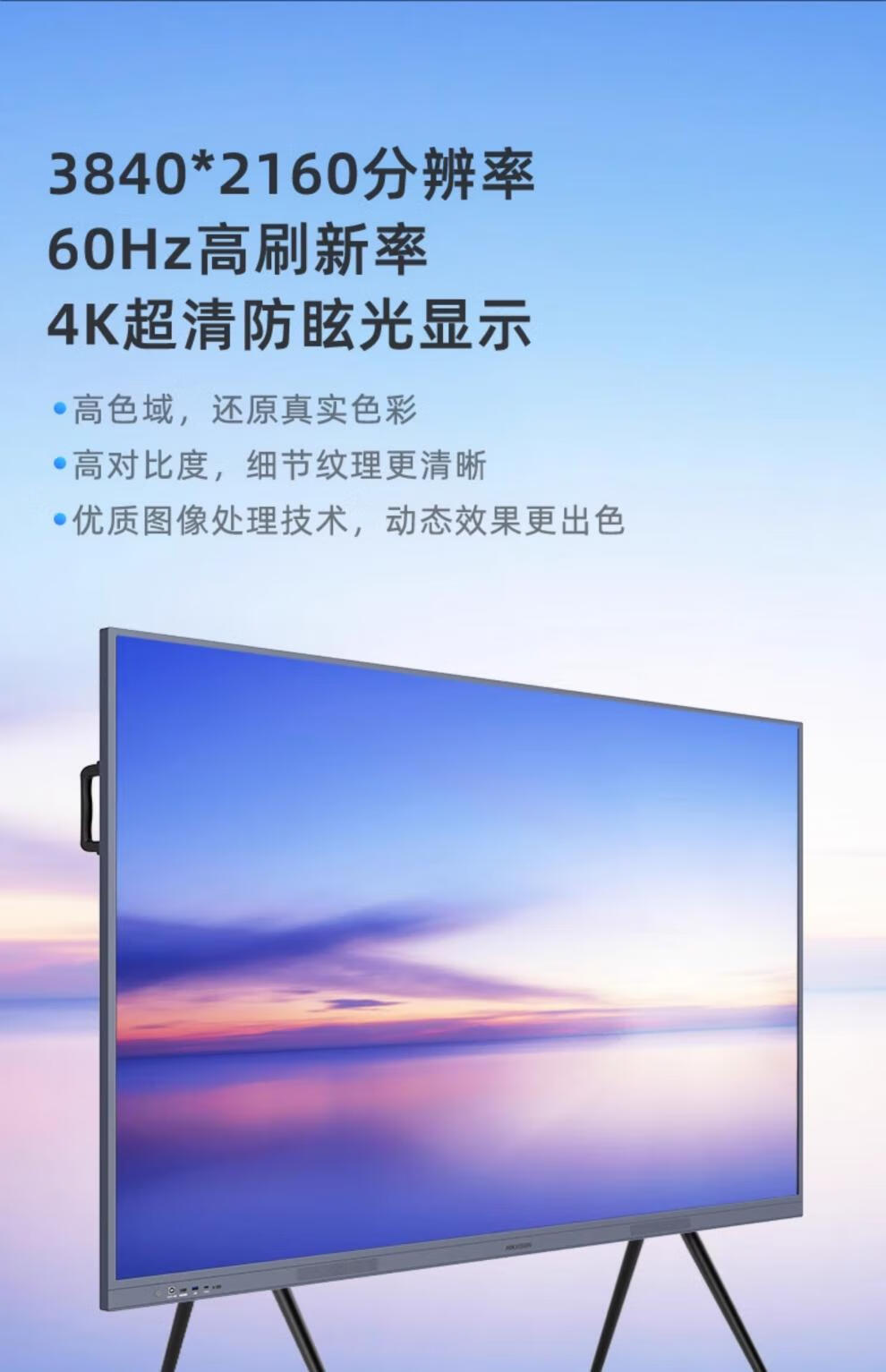海康威视智慧会议平板一体机触摸电脑多媒体电子白板一体机 办公室互动无线投屏培训4K显示屏远程学习平板 65英寸会议平板 官方标配