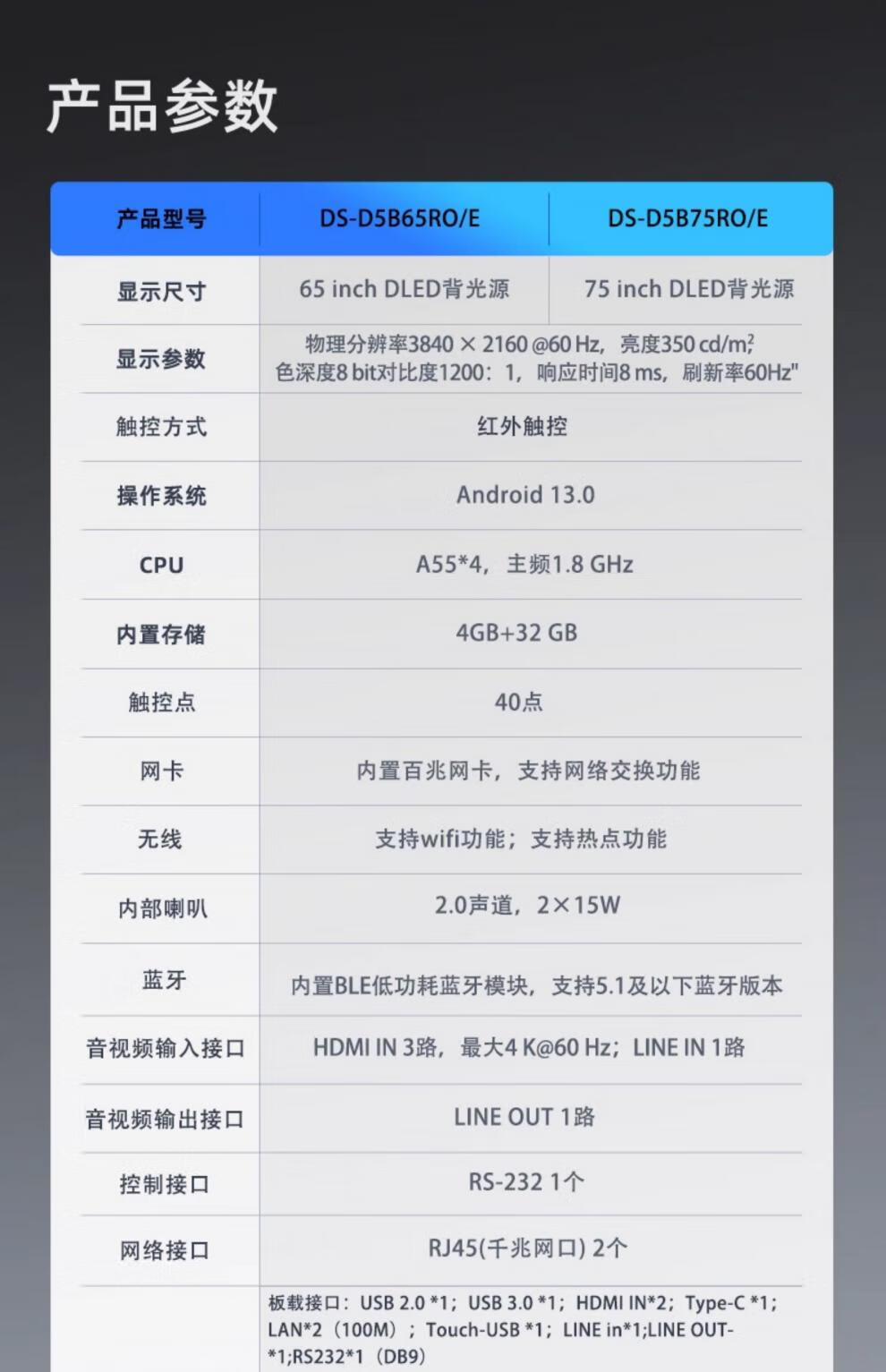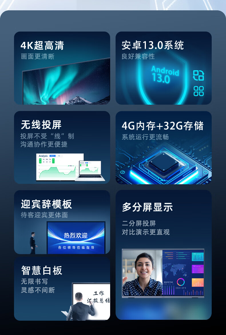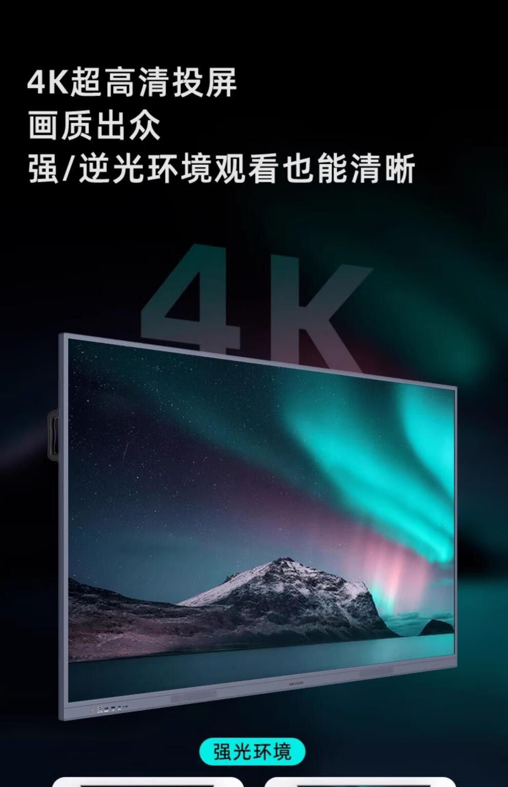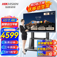 海康威视会议平板一体机 触摸屏智能交互式电子白板视频会议4K超清教育教学一体机55/65吋 65吋安卓+投屏器+移动支架(送挂架+2触笔)