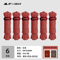 三峰出三峰户外新款反光风绳帐篷风绳天幕风绳拉绳固定绳地钉绳送止动扣 红色4M*4mm*6根