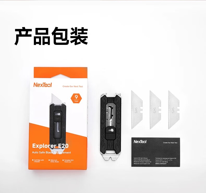 纳拓(NexTool)户外多功能EDC介纸刀居家手工刀办公设计弹匣系统替换刀片 探索者E20(配3片高碳刀片)