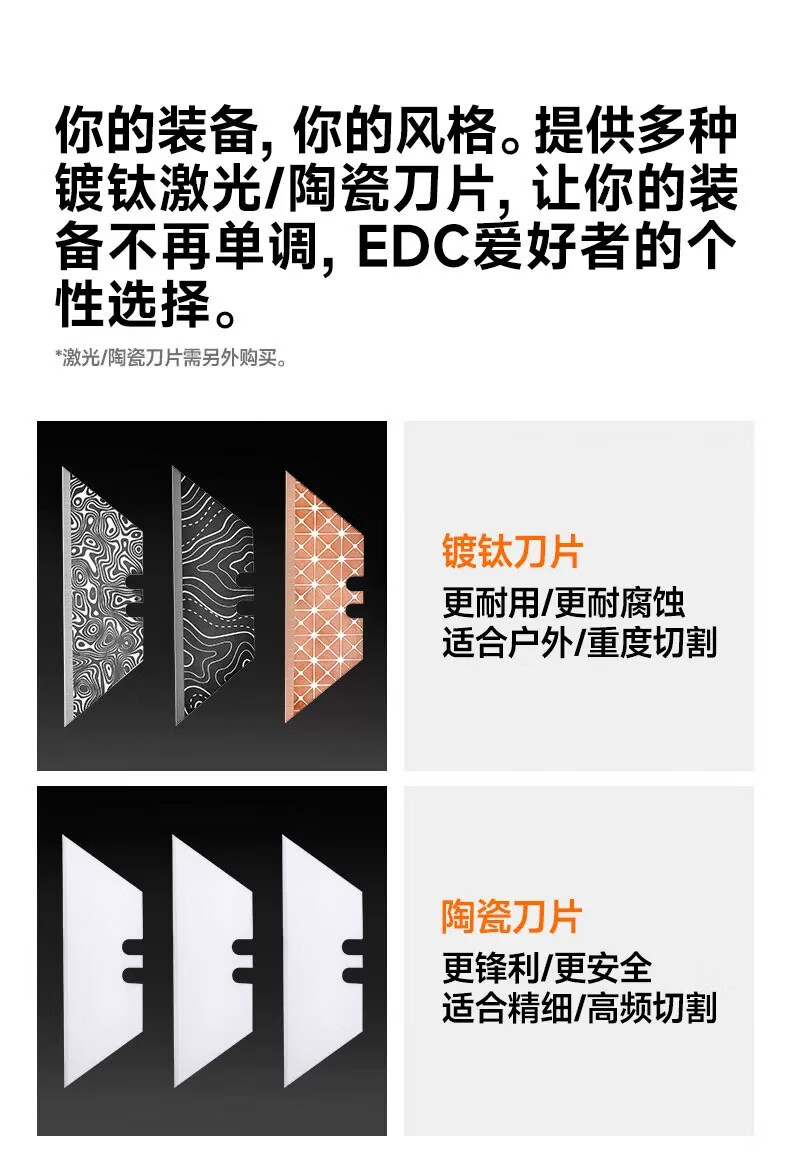 纳拓(NexTool)搜索者E20银翼多功能美工介纸梯形刀便携式 陶瓷刀片(三张) 无规格