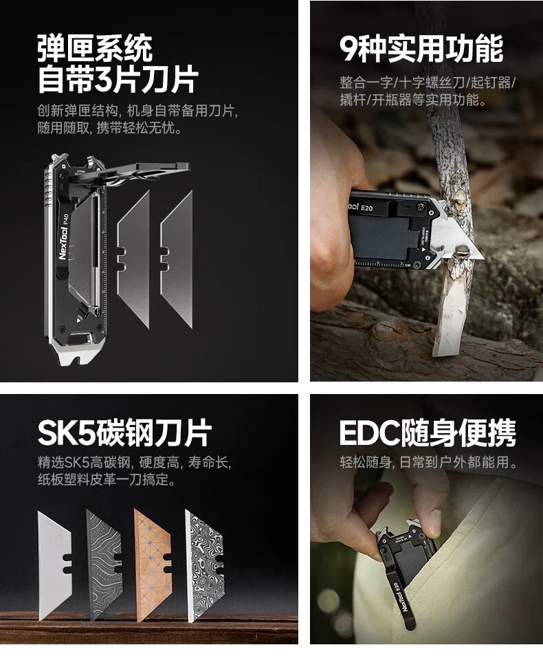Nextool纳拓搜索者E20银翼多功能美工刀介纸梯形刀片便携式刀具