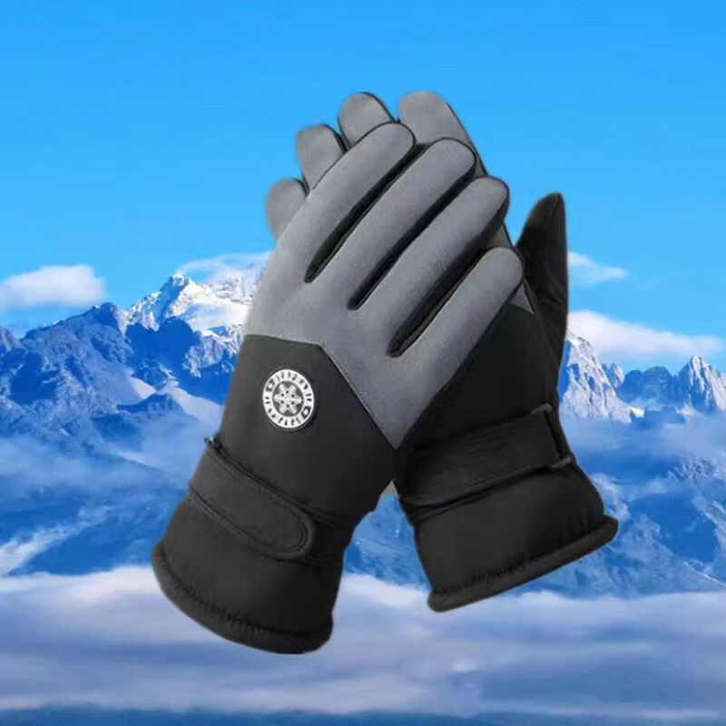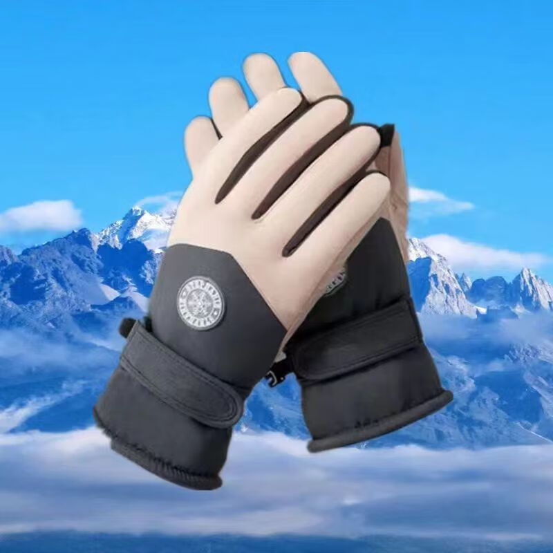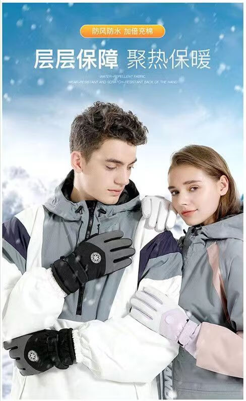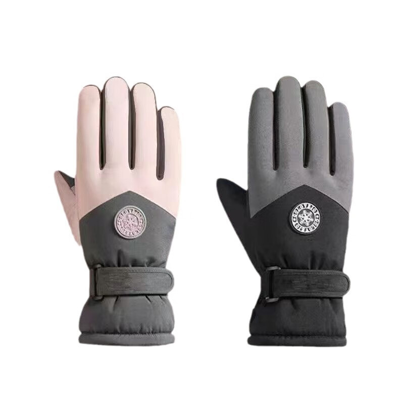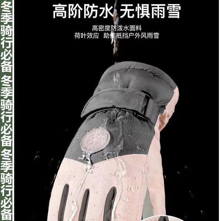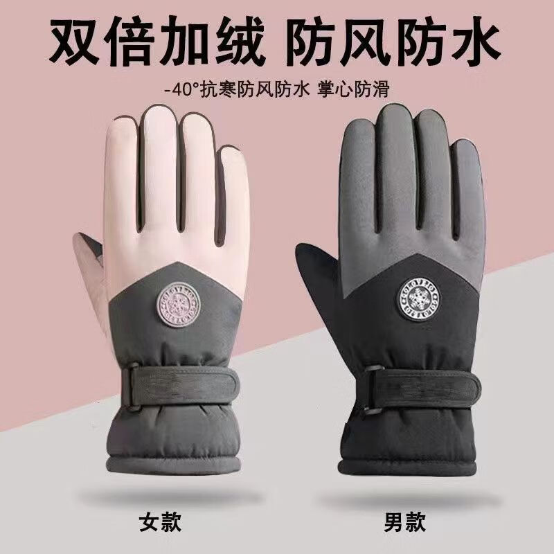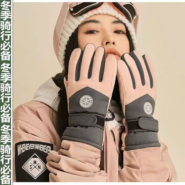 尤池哩男女冬滑雪手套棉成人防水加厚保暖手套户外玩雪五指手套登山骑行 粉灰【女款均码】