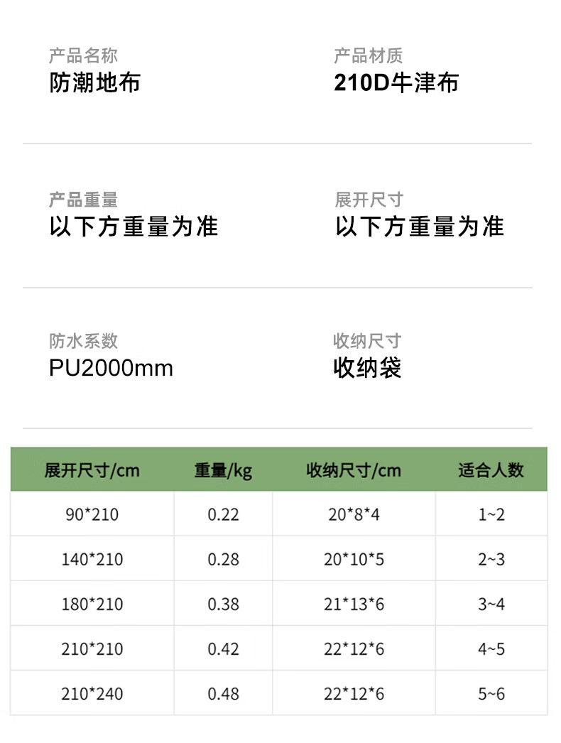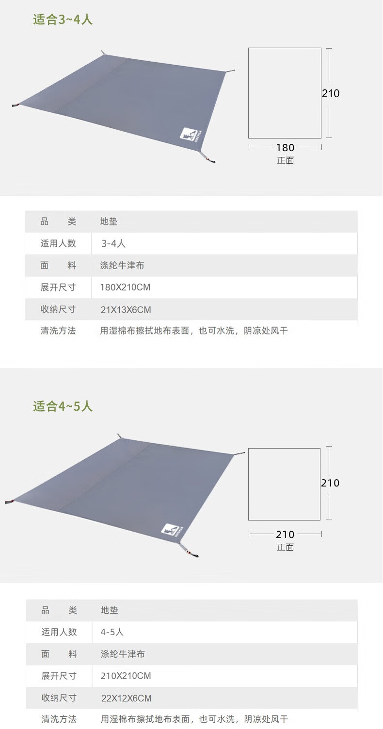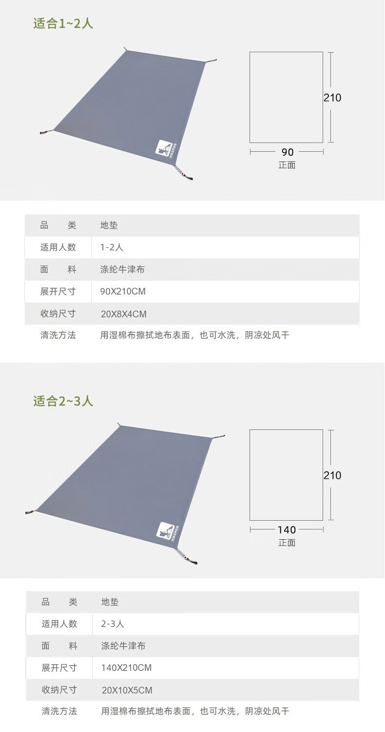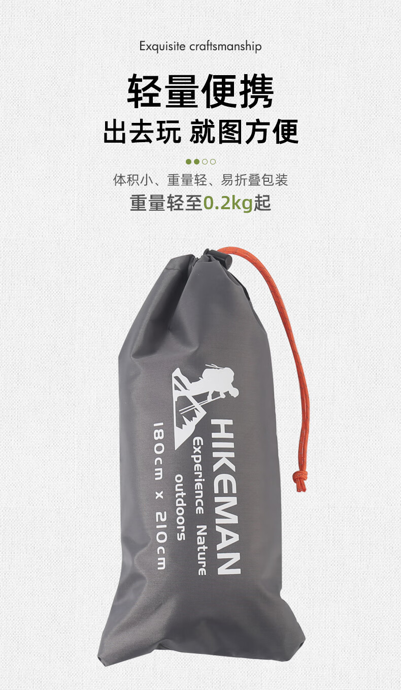 HIKEMAN憨客帐篷防潮垫户外露营野餐垫天幕防水地垫耐磨牛津地布隔脏垫子 双人【140*210CM】无地钉