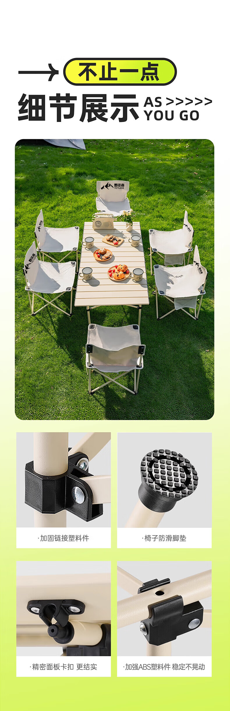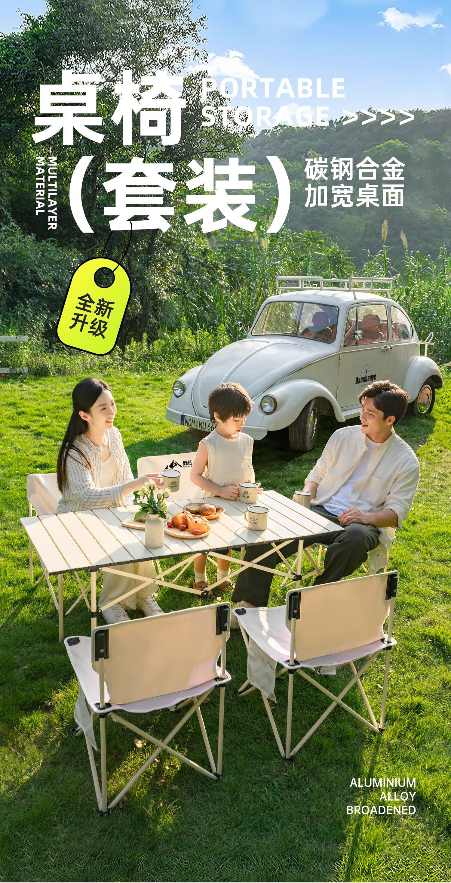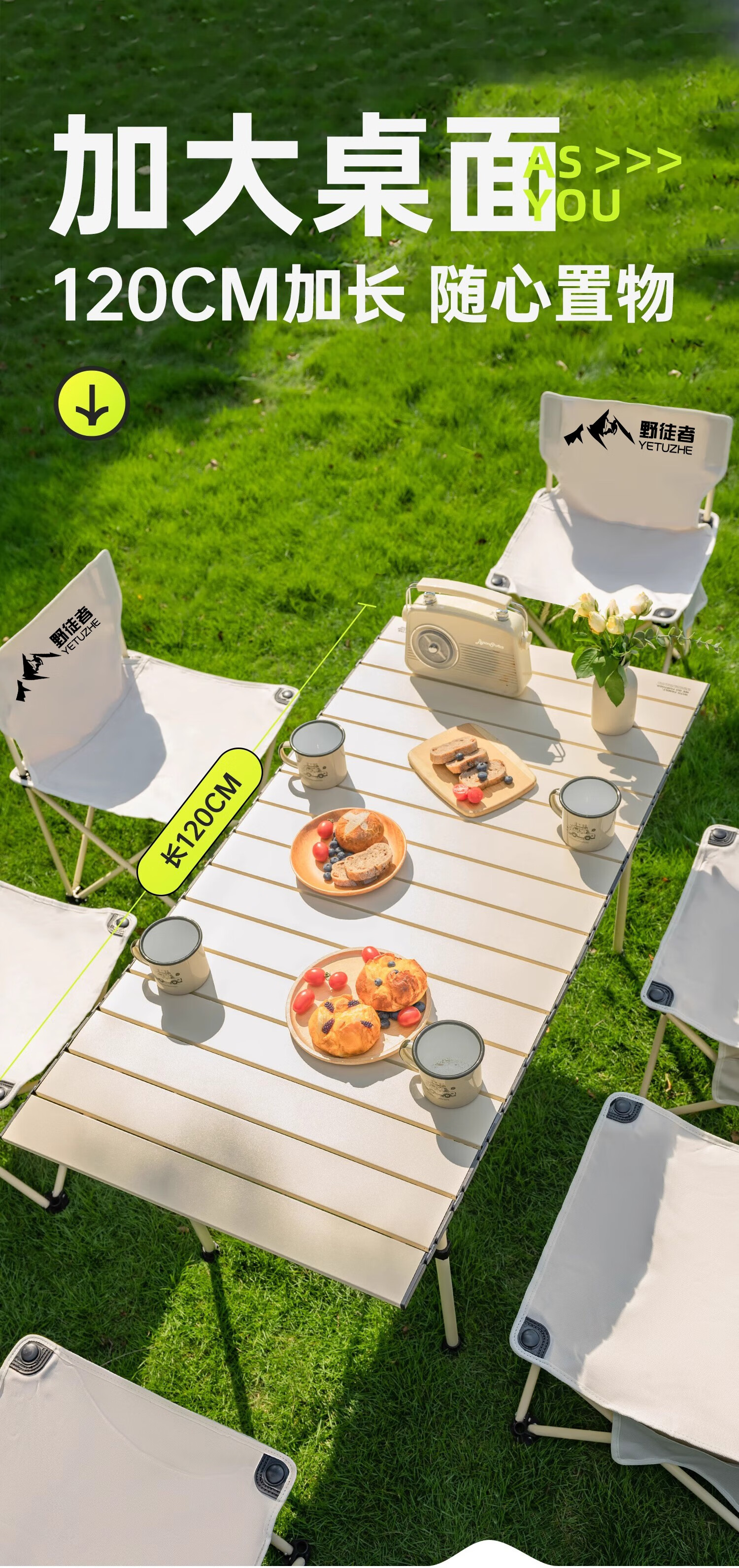 野徒者露营桌椅全套户外桌椅折叠椅野餐一桌四椅户外露营装备野炊蛋卷桌 95cm5件套【米色长桌+4把椅子】 新款升级