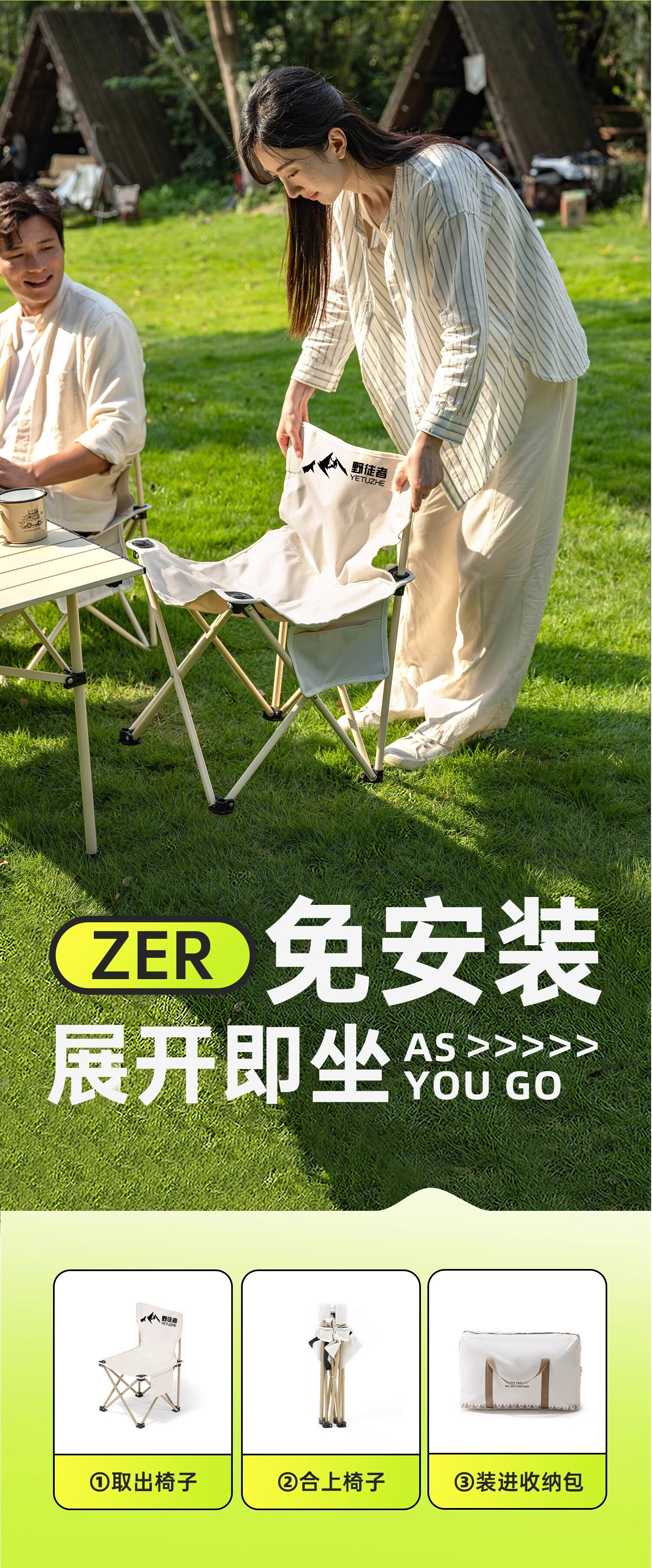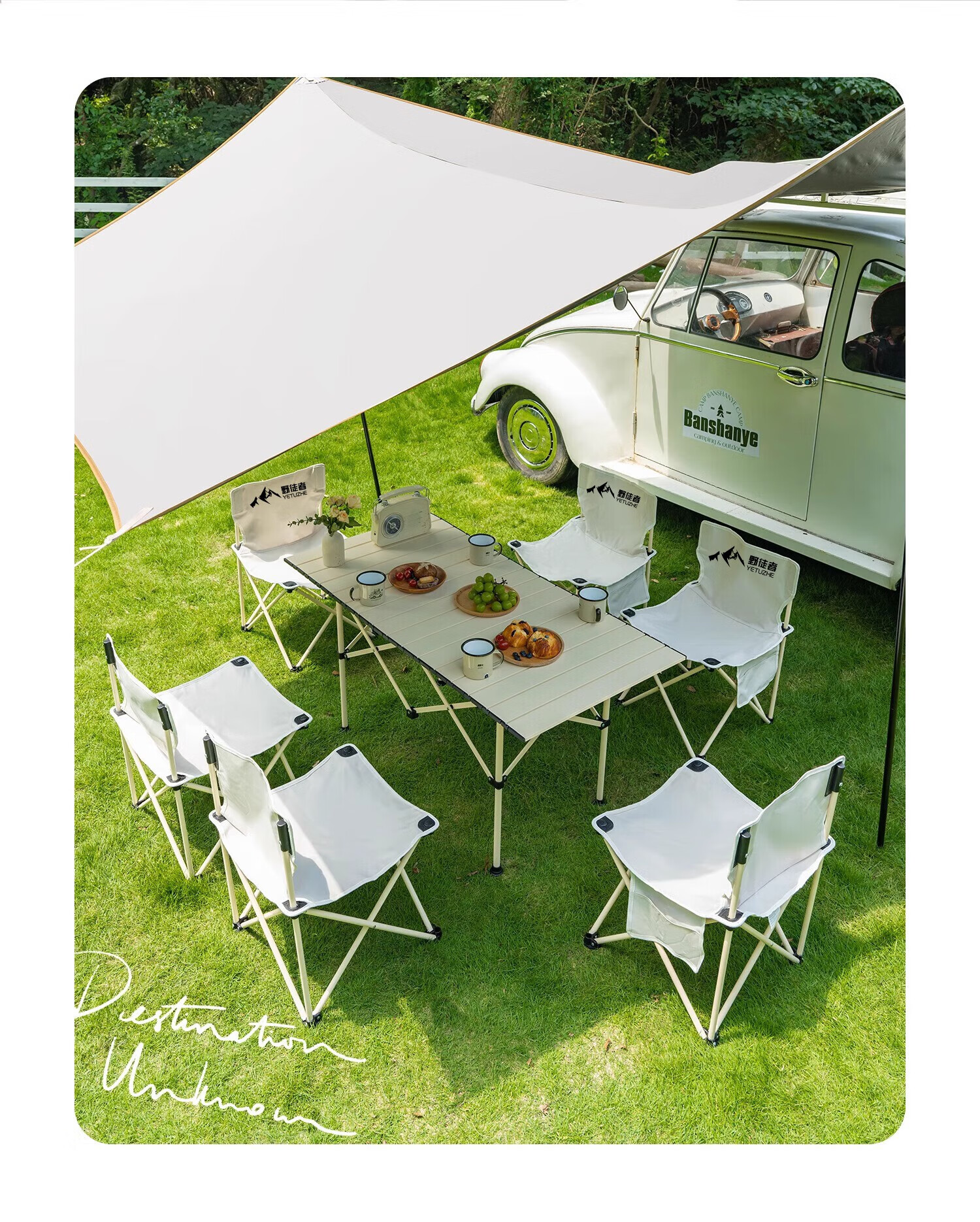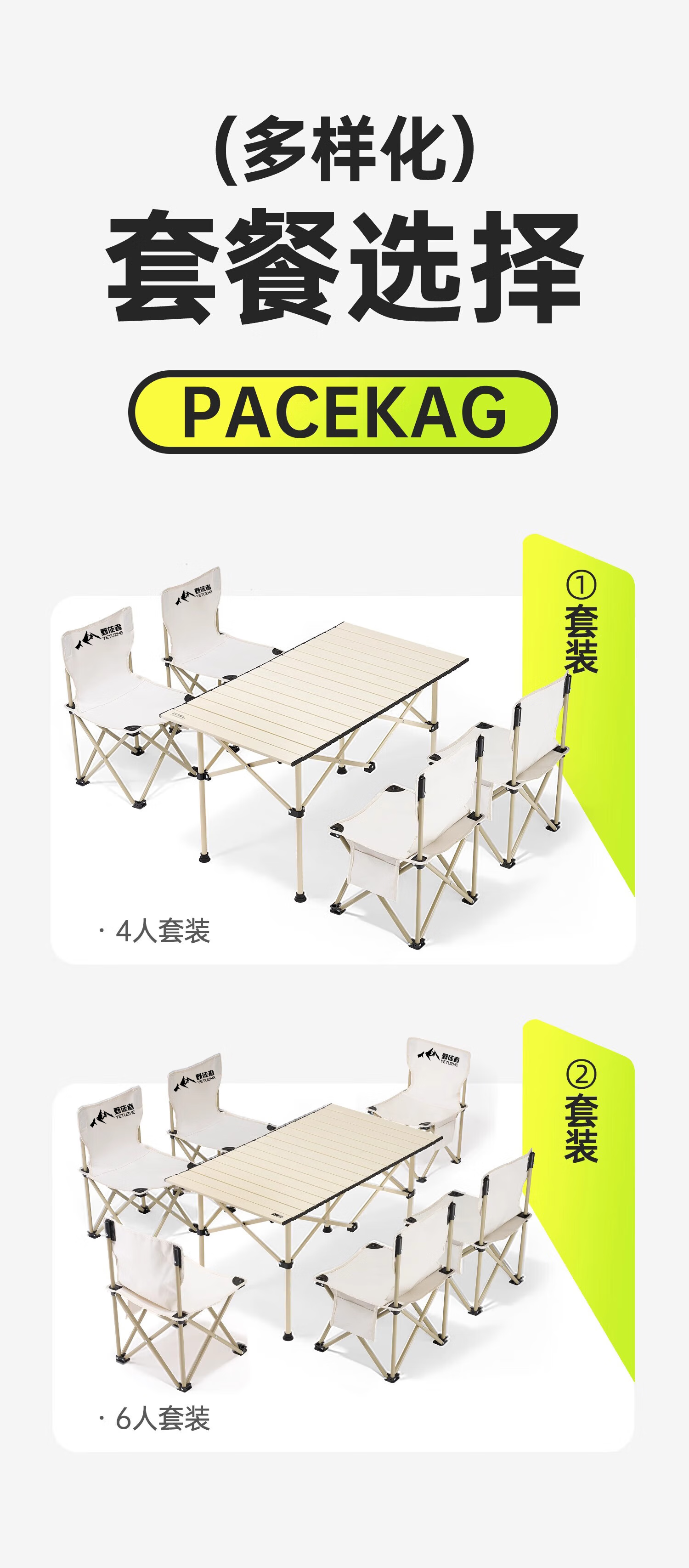 野徒者露营桌椅全套户外桌椅折叠椅野餐一桌四椅户外露营装备野炊蛋卷桌 95cm5件套【米色长桌+4把椅子】 新款升级