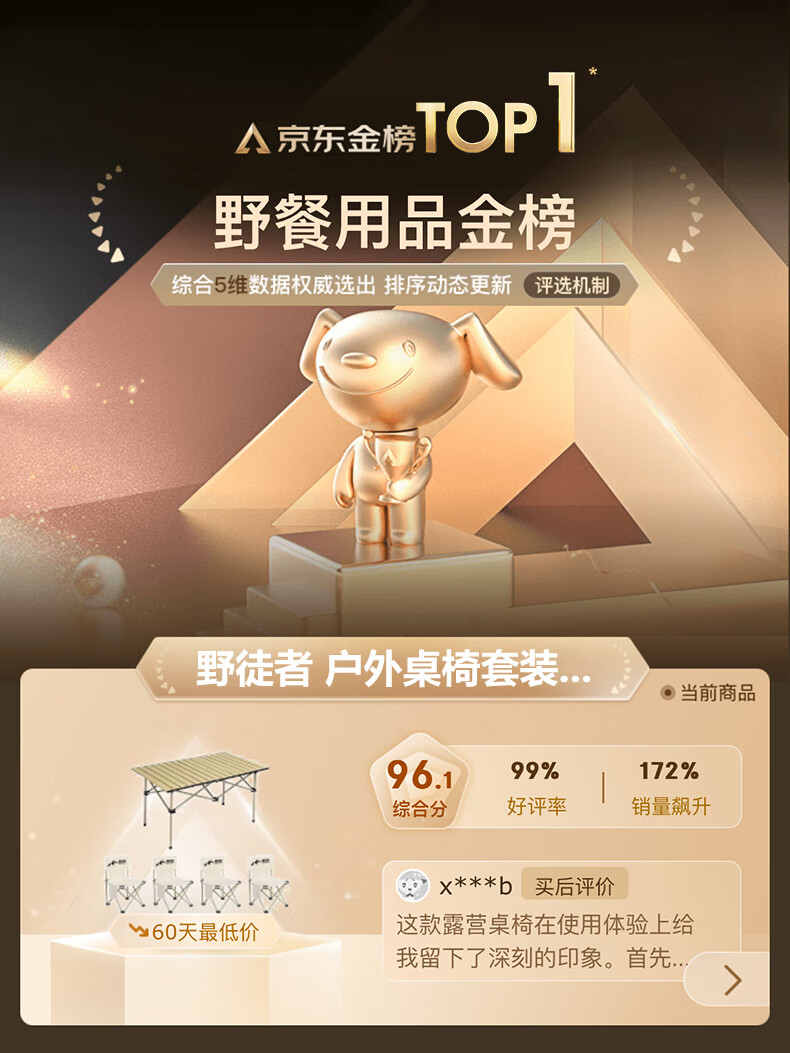整体来说还是比较满意的,但是官方旗舰店和京东自营仓的同样的产品价格不一样,这点是不好的,我当时是因为时效性选择了自营仓发货。我距离发货地也很近,官旗的库房发货应该也差不多,但是第二天就要用,怕来不及就选择了自营仓的,收到货后拆开看第一感觉椅子小点,桌子大小是没问题的,拆装折叠都没有问题,整体是比较满意的