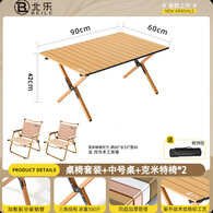 北乐户外便携式露营蛋卷桌可折叠桌椅子野餐摆摊桌椅野营野炊装备套装 木纹色中号【90cm】+克米特椅*2