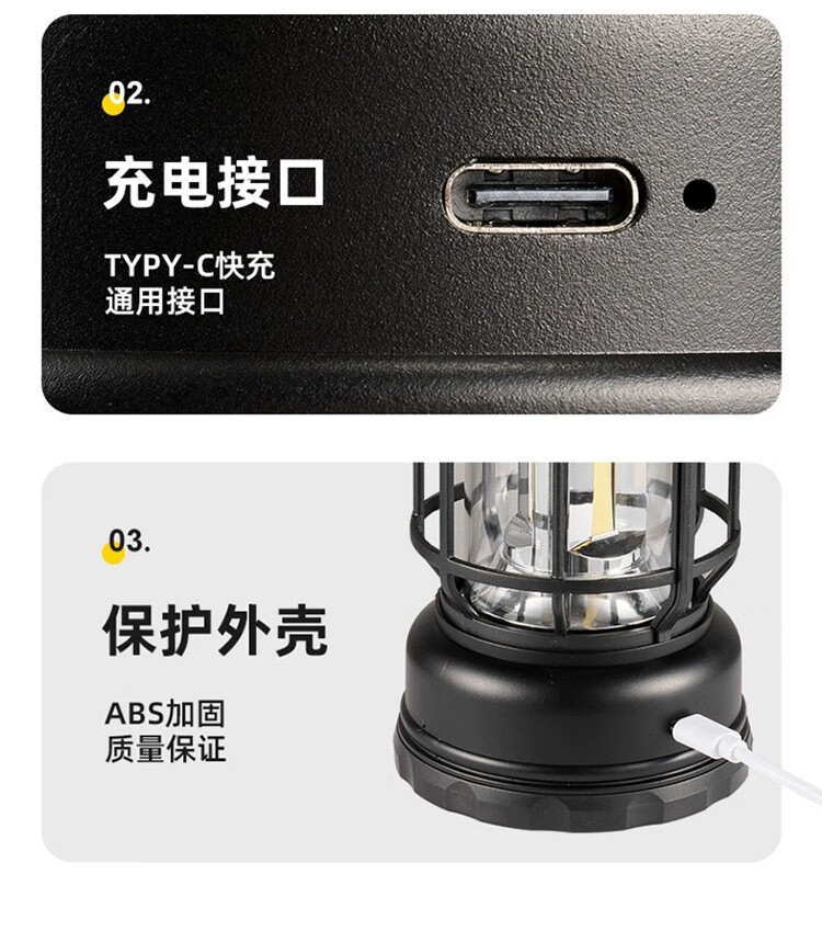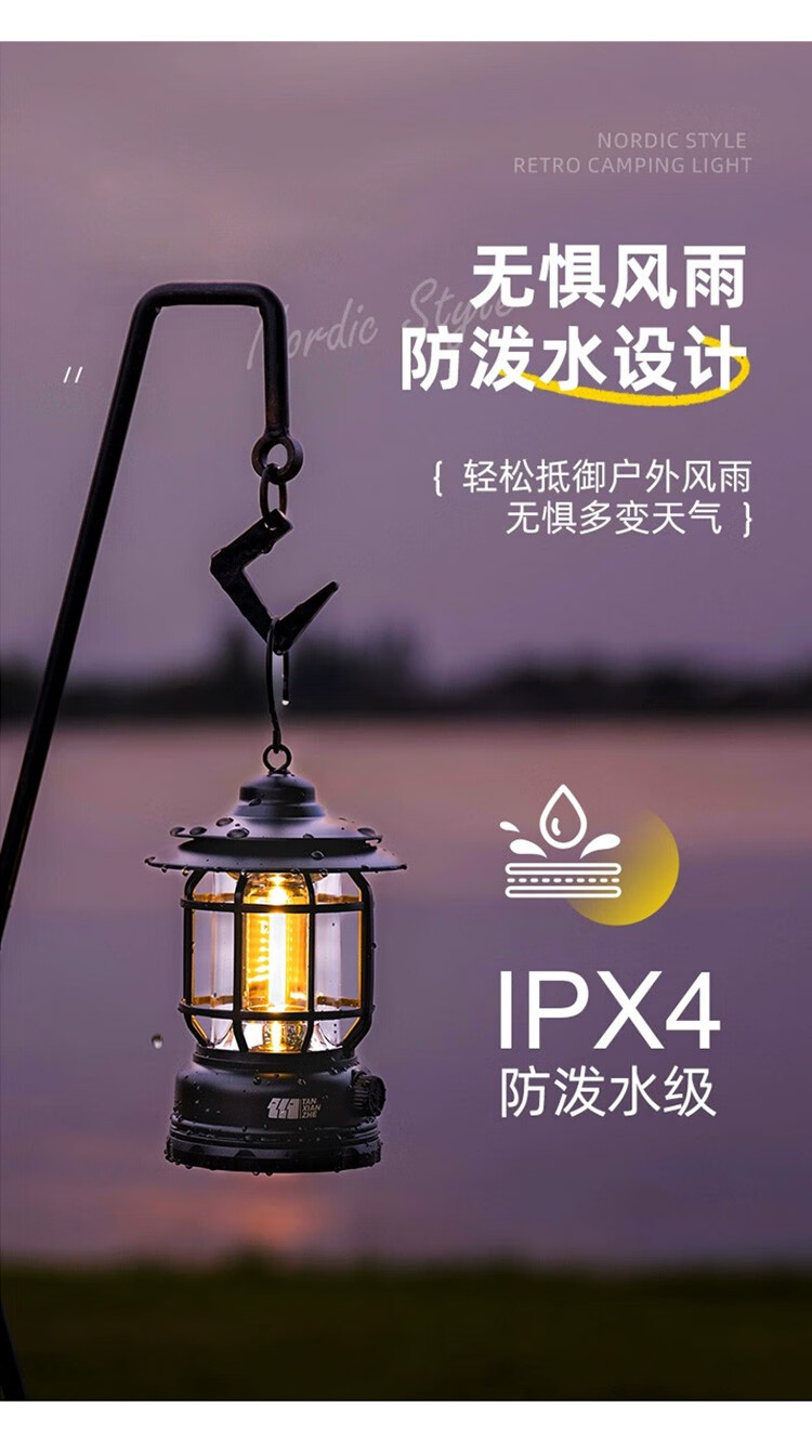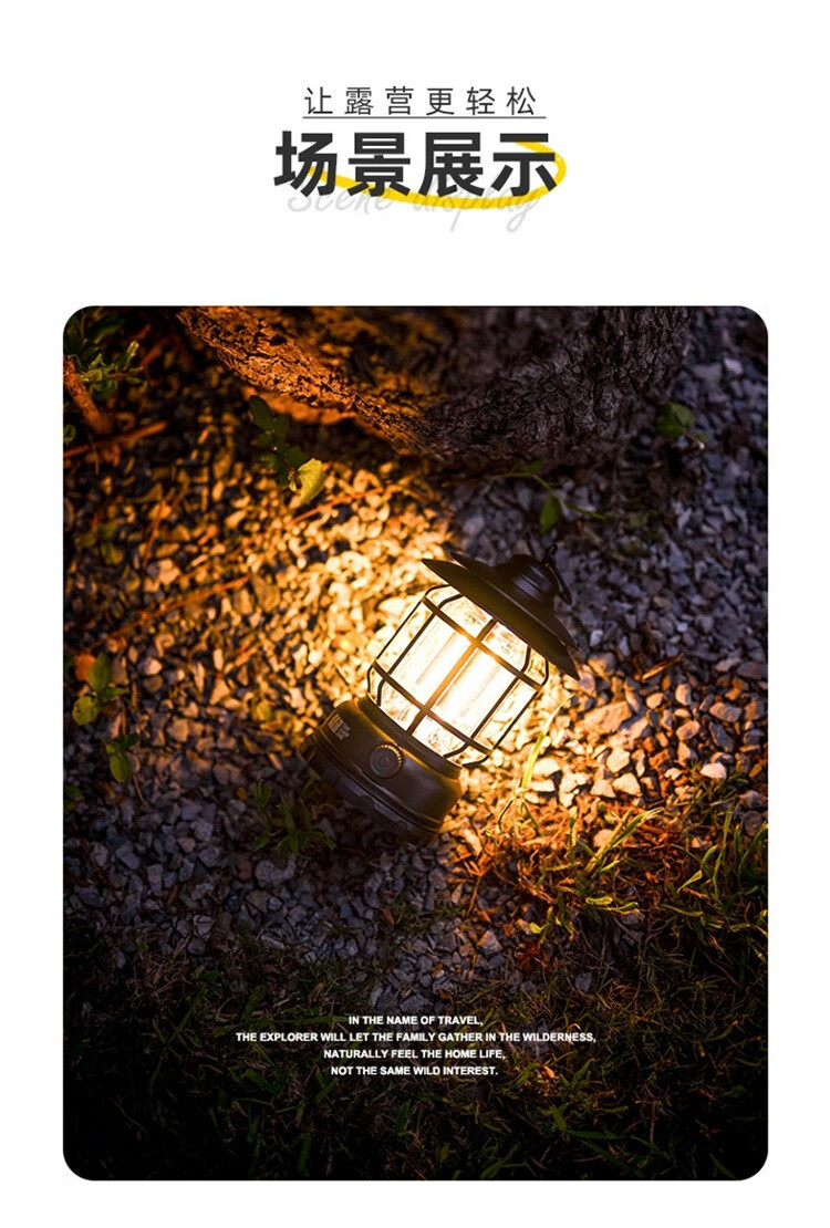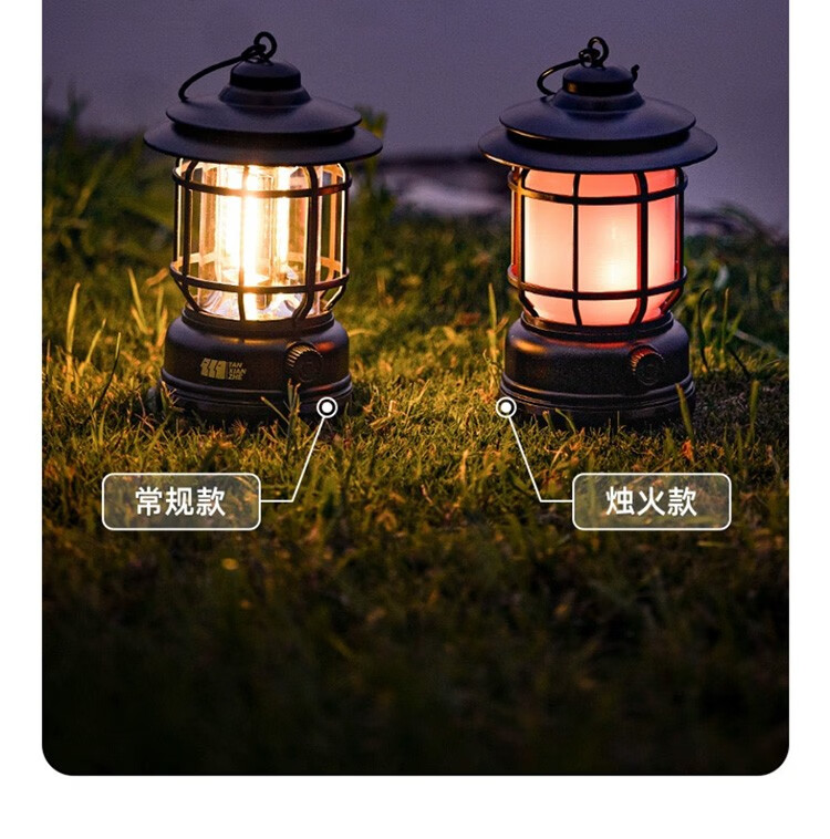 原始人露营灯户外灯照明马灯超长续航野营灯充电氛围灯户外帐篷灯 【电池款】星烛濡雨黑:二挡调光