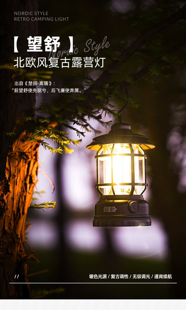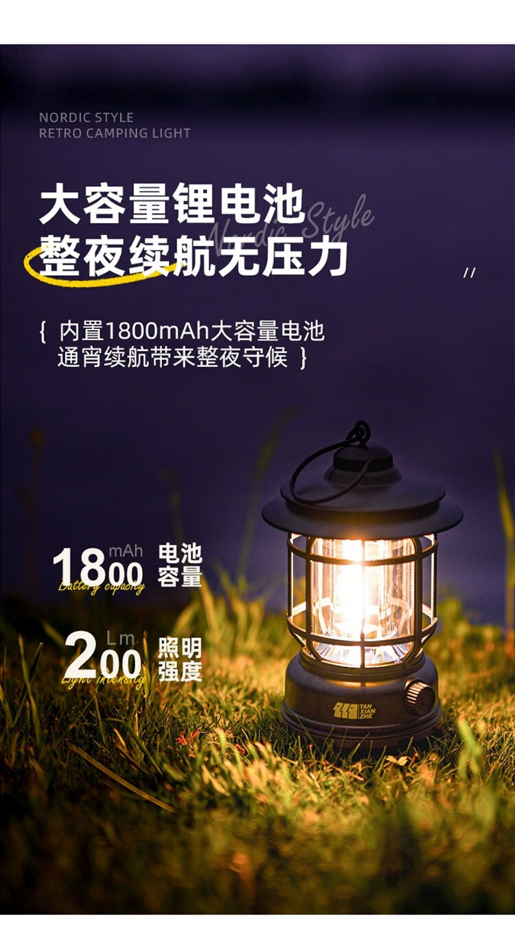 探险者(TAN XIAN ZHE)露营灯户外灯照明马灯超长续航充电野营灯氛围灯户外帐篷灯 【烛火款】曜石黑【无极调光】
