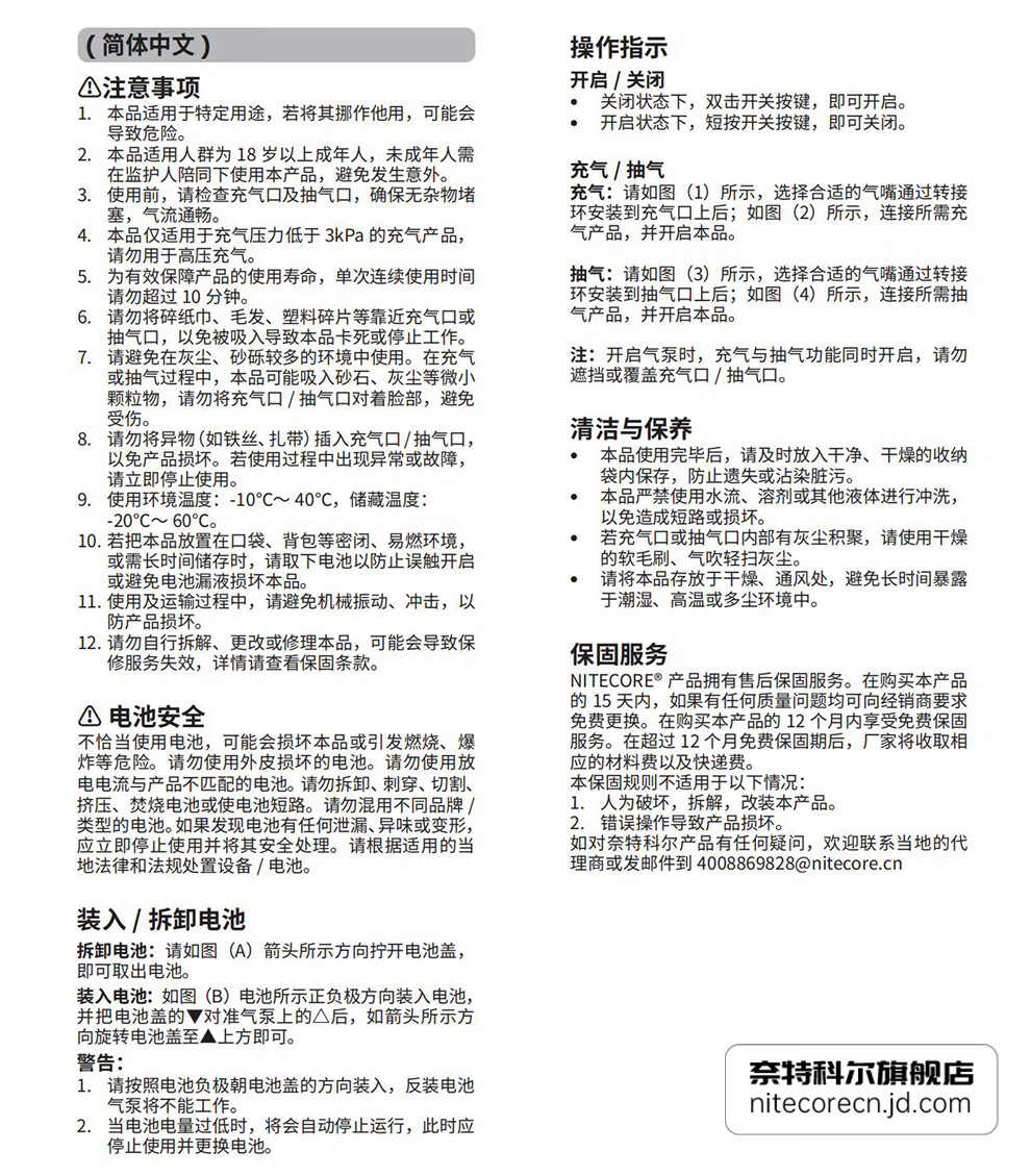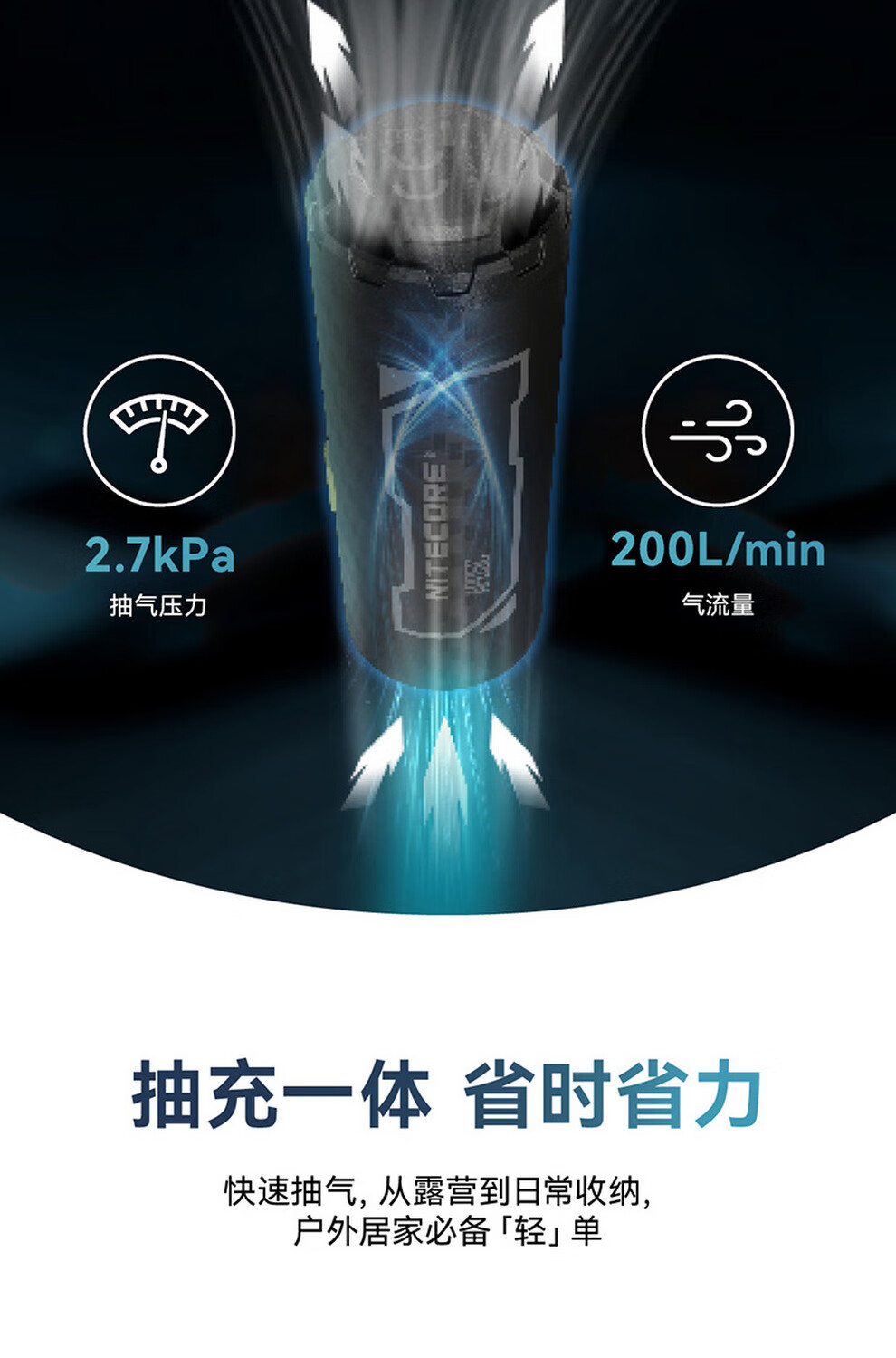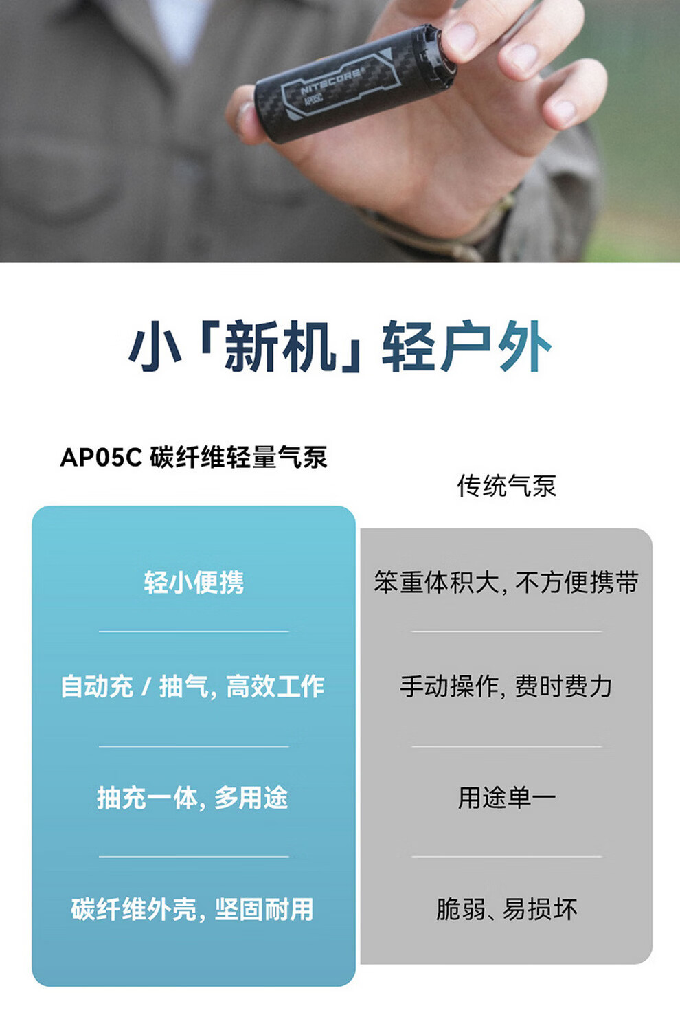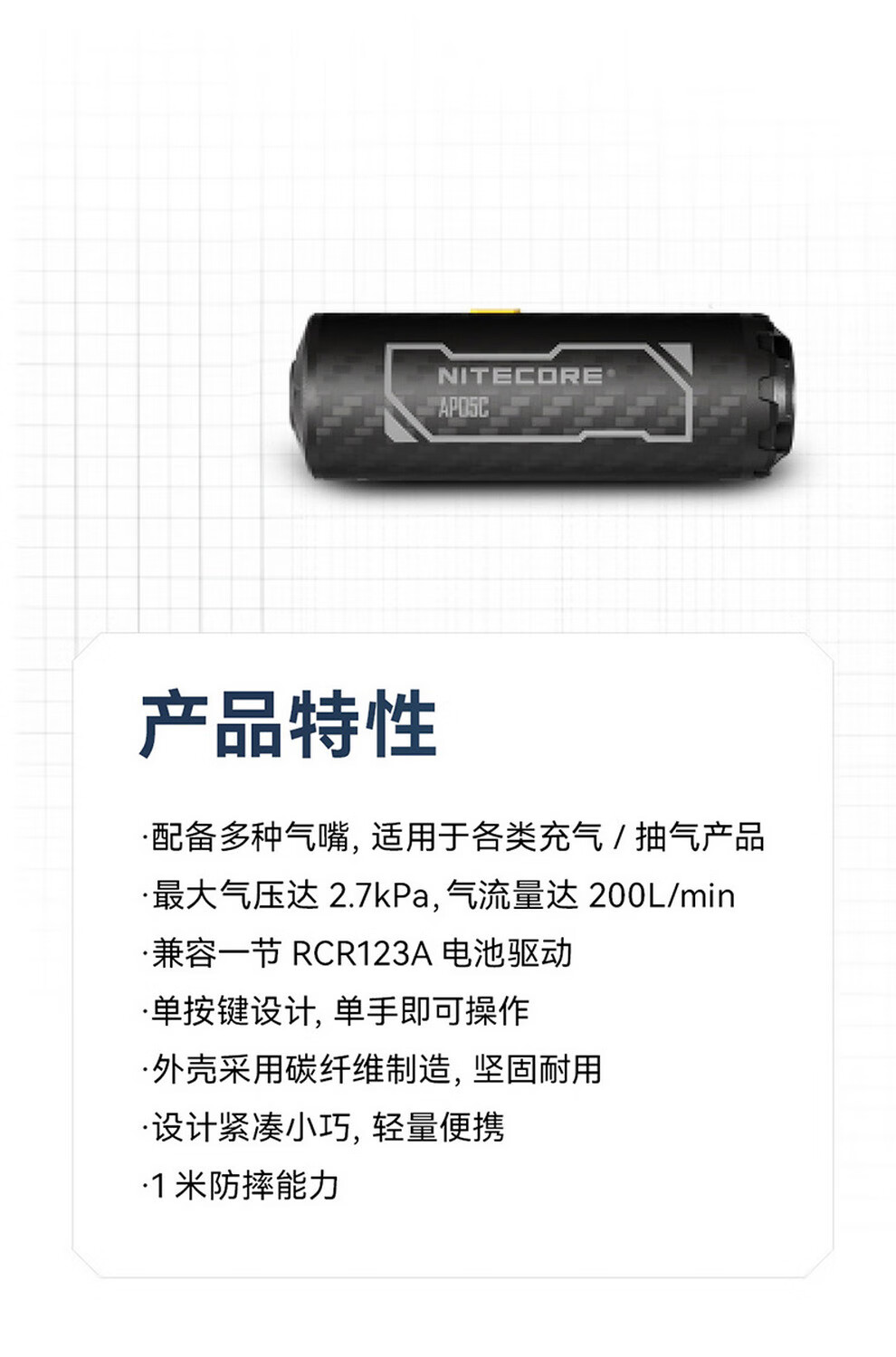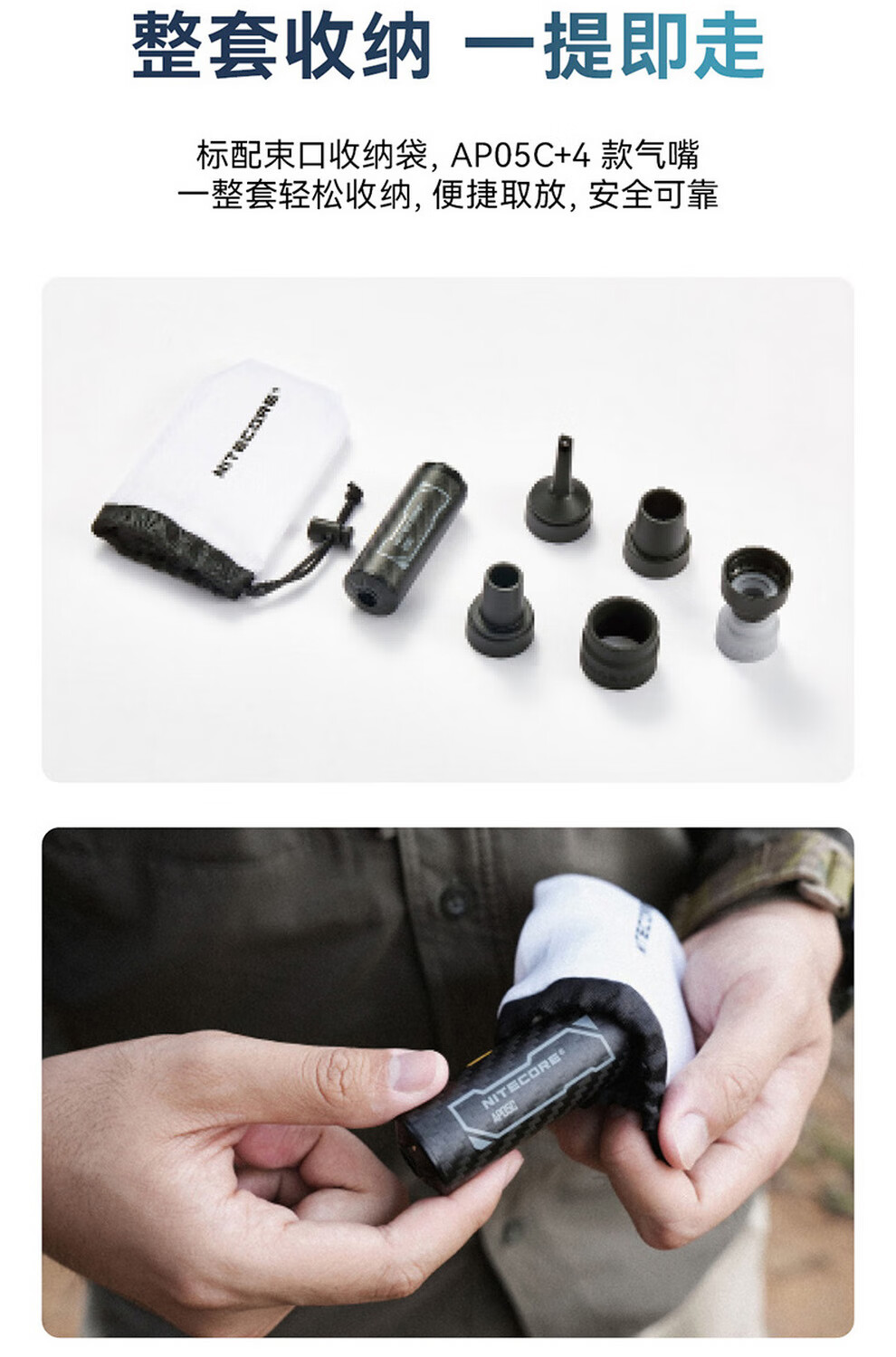奈特科尔(NITECORE)AP05C碳纤维无线电动充气泵便携游泳圈气垫床帐篷睡垫充抽气两用 AP05C标配 + 充电电池