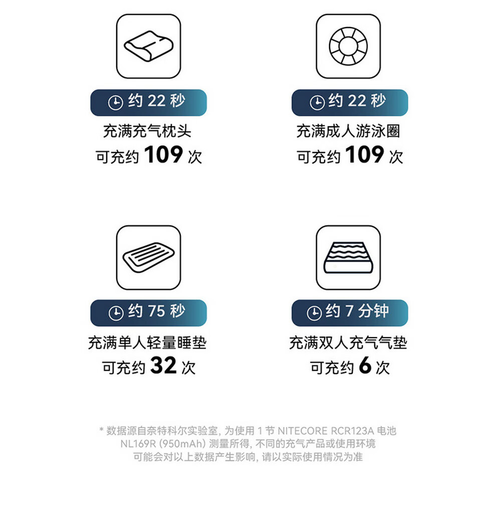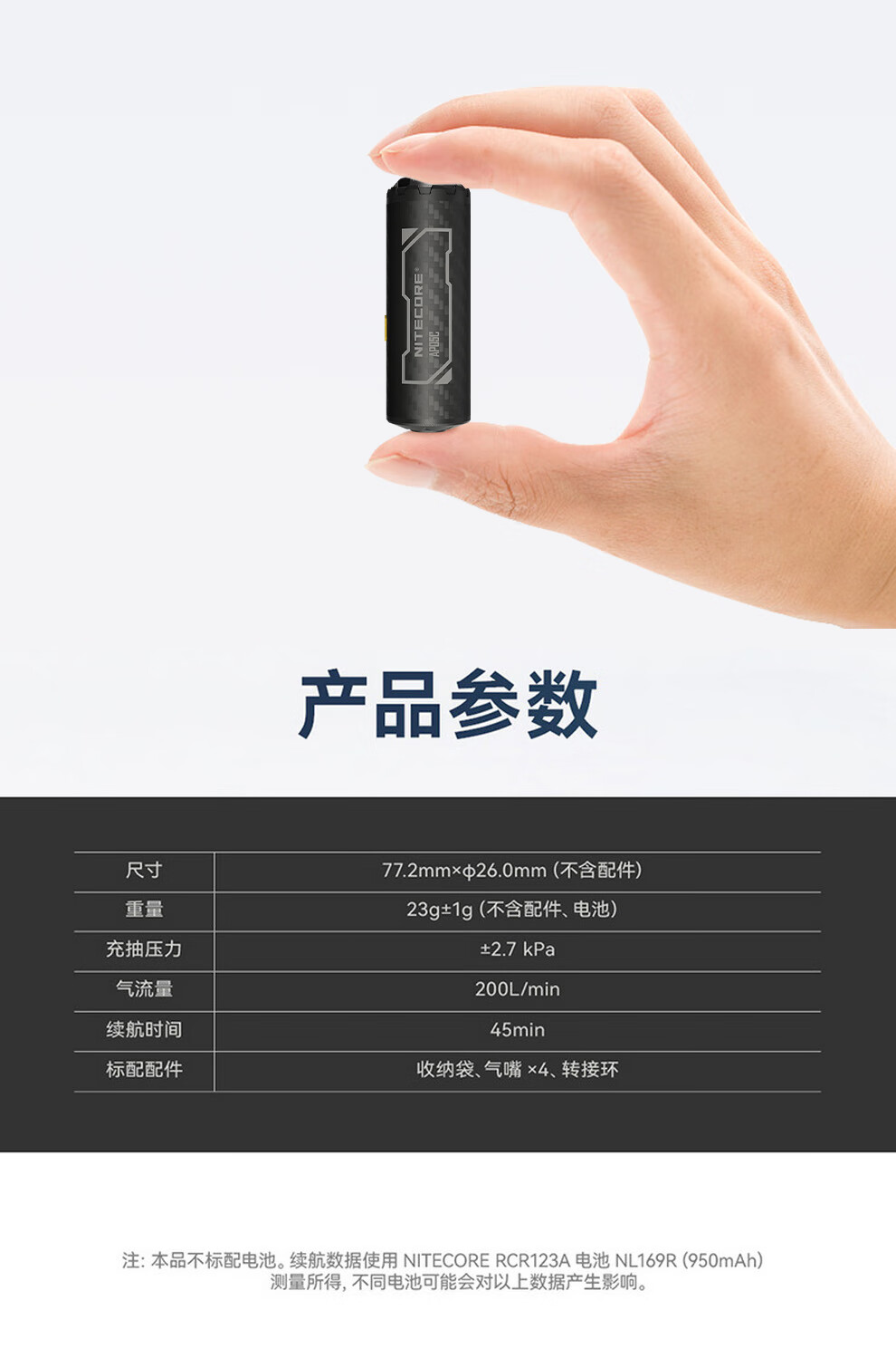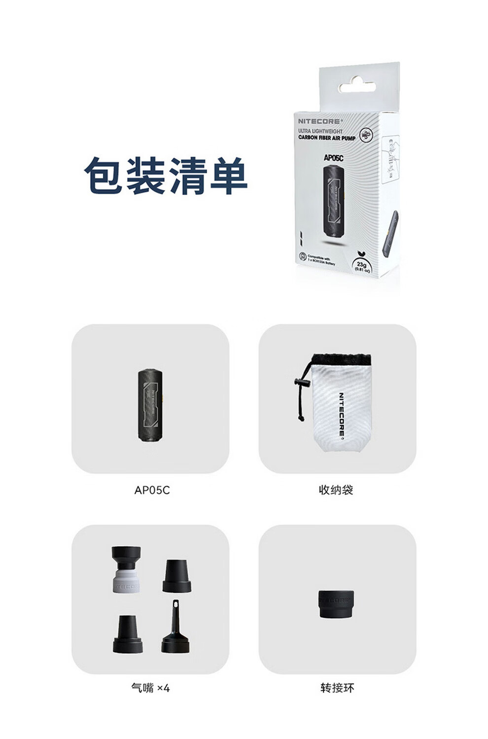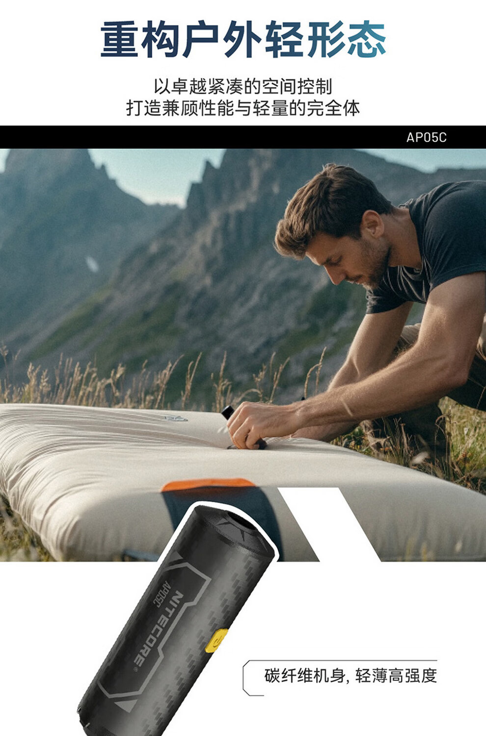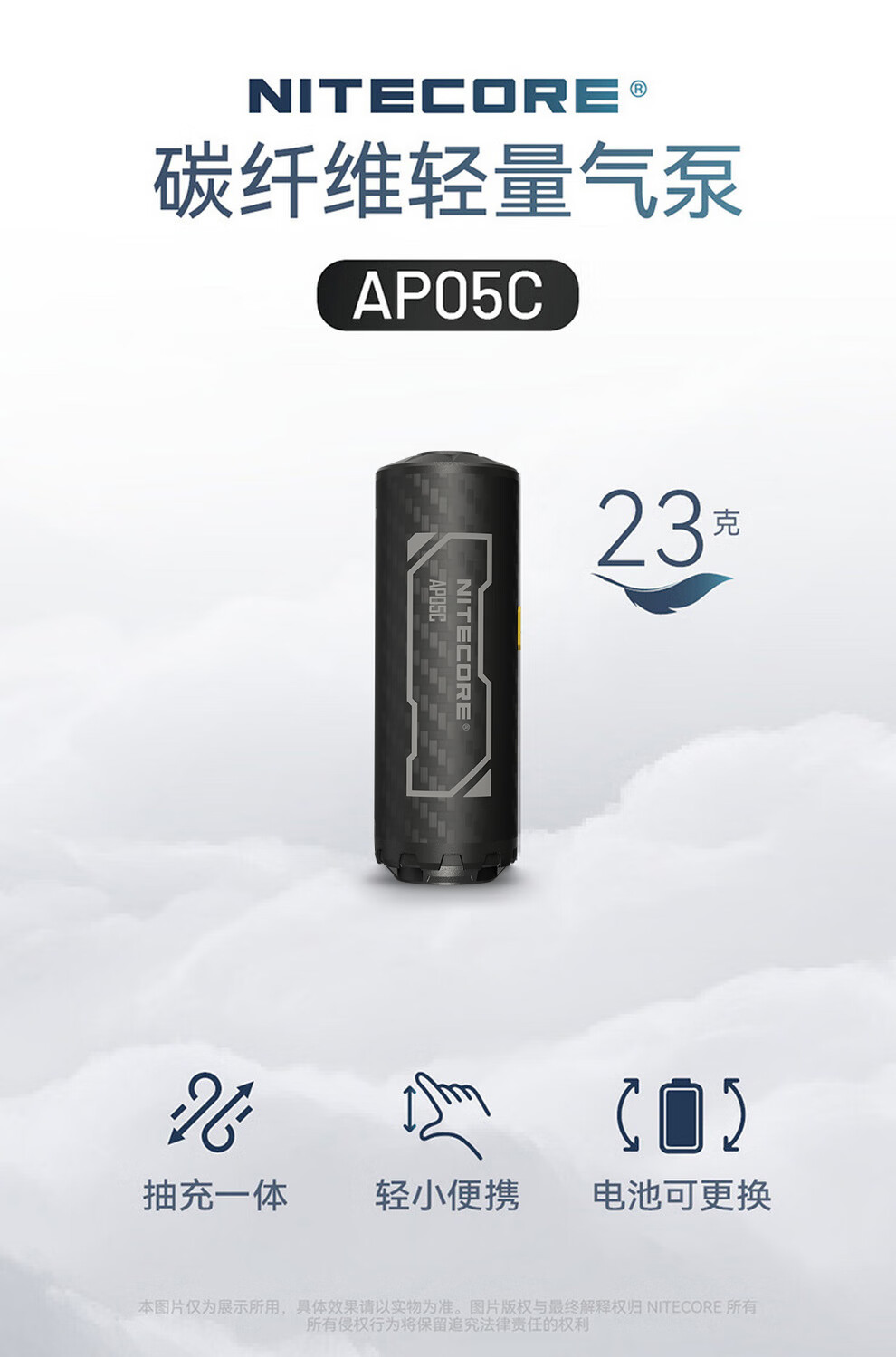 奈特科尔NITECORE奈特科尔AP05C户外露营碳纤维气泵轻量便携式电动充气泵 AP05C+NL169R锂电池