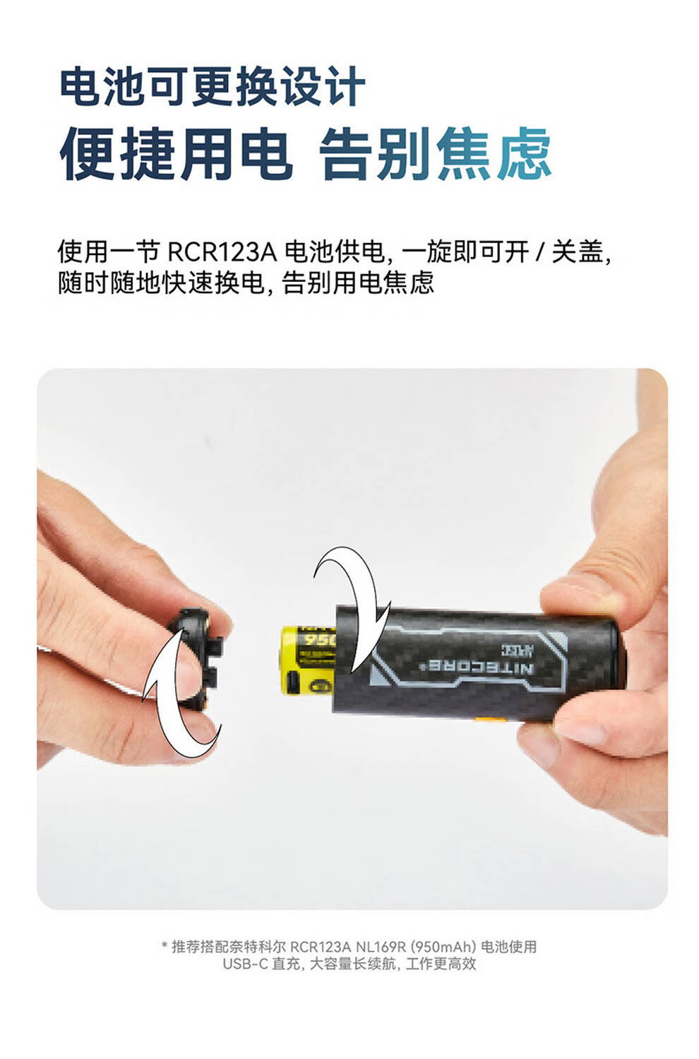 奈特科尔(NITECORE)16340锂电池950mAh充电大容量电池/NL169R NL169R(950mAH)
