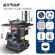 烽点气化柴火灶农村家用烧木柴煤两用加厚铸铁室内无烟冬季取暖炉子 威天气化炉+40锅+水箱+水壶5米烟管配件