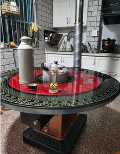 能师傅【送货上门】气化炉家用室内烤火炉柴煤两用节能无烟柴火炉灶农村 1.6米平转防爆玻璃桌面【10-13人 气化炉】