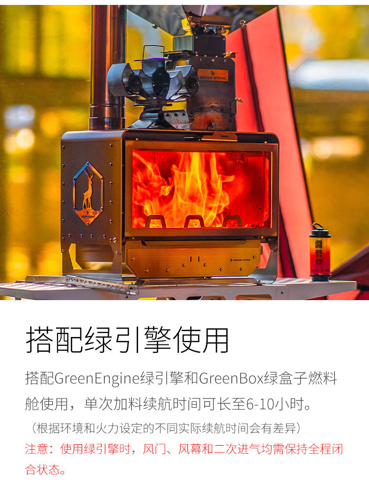 2024第三代绿炉小壁炉FP3.0户外柴火炉露营帐篷炉 小壁炉3.0单玻璃版_限时