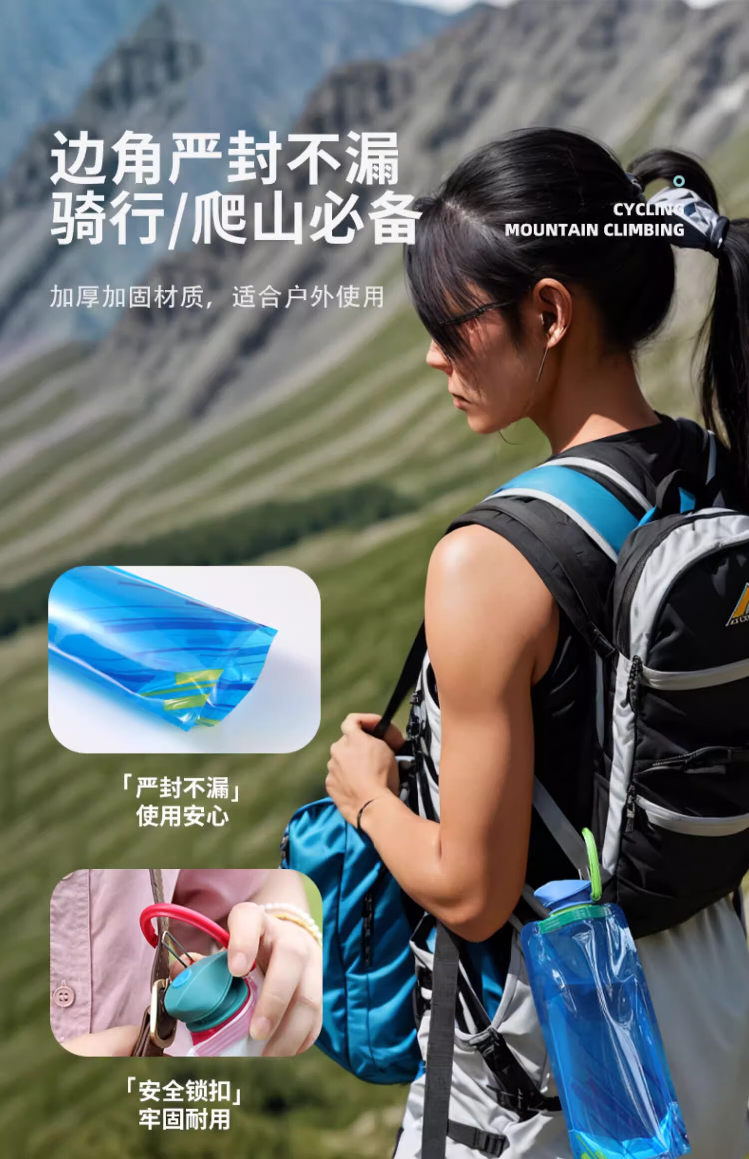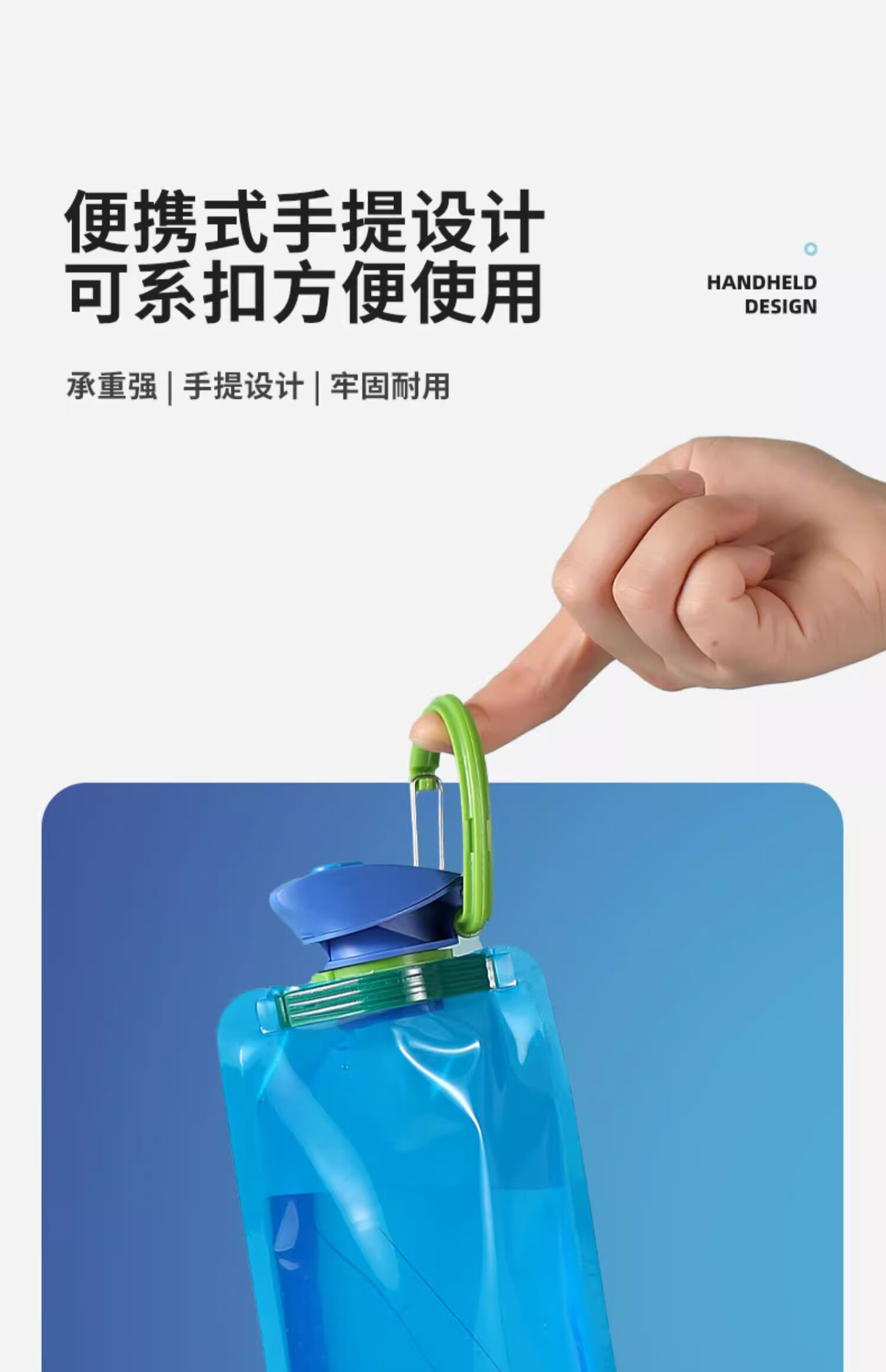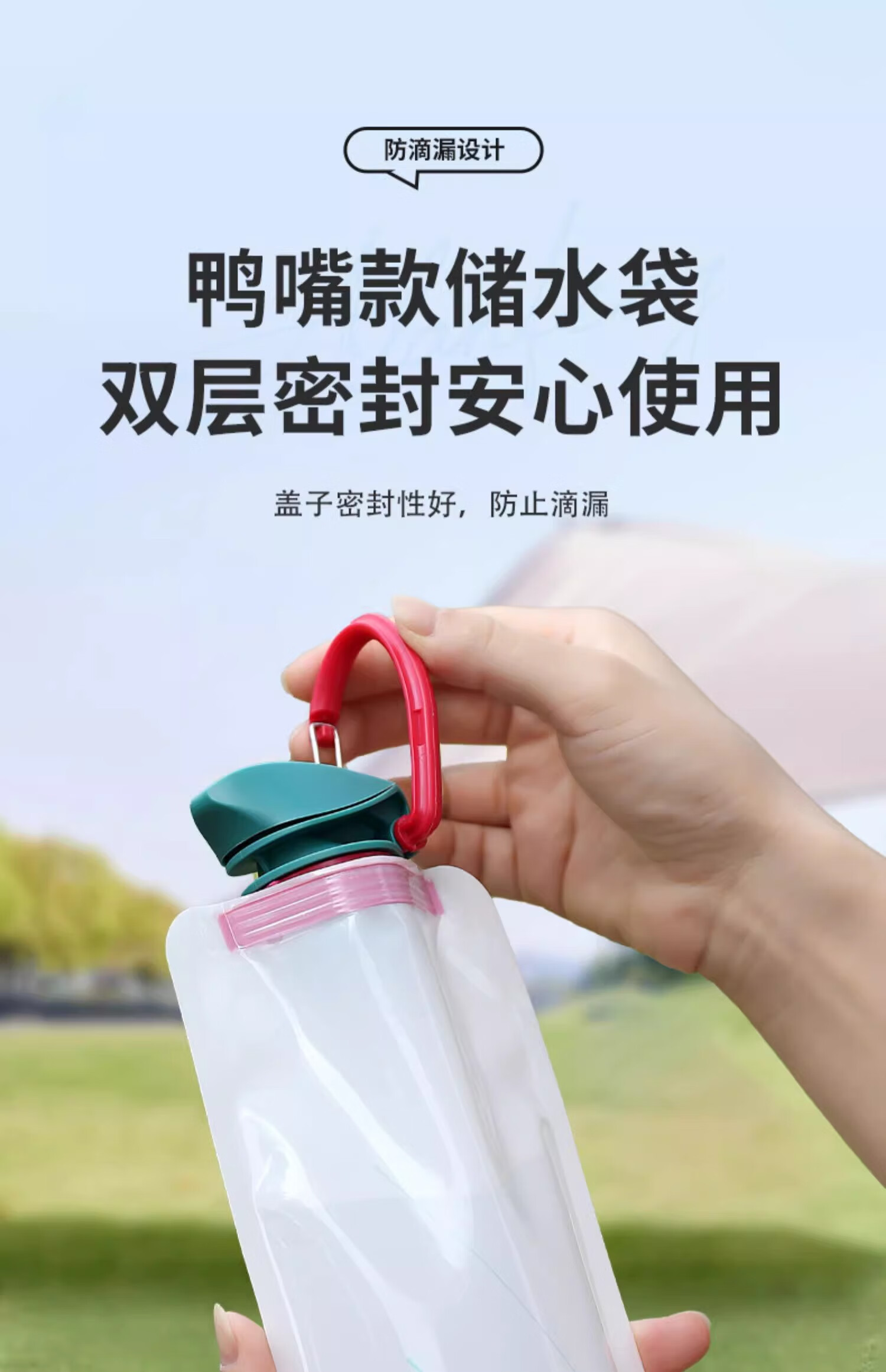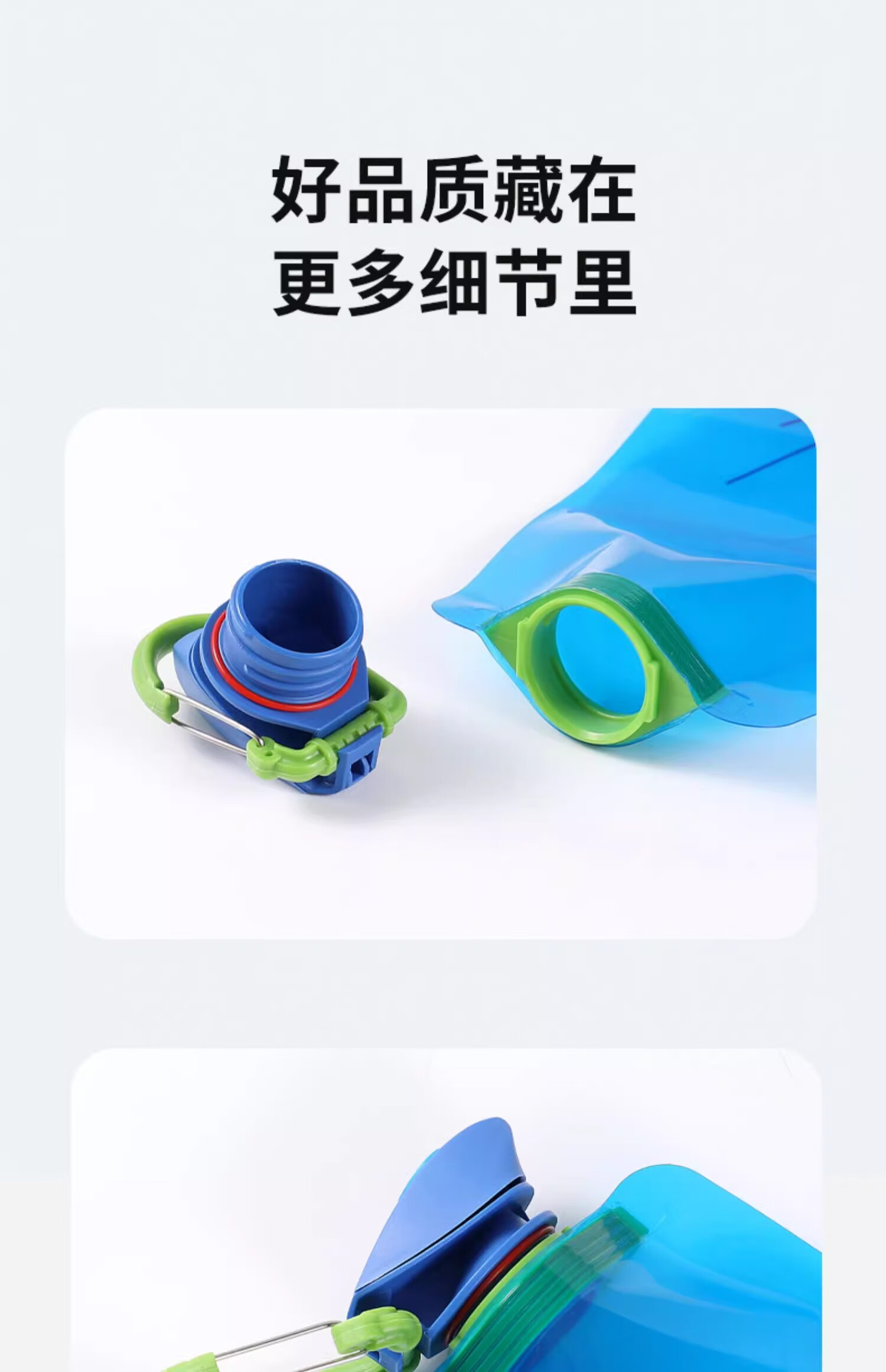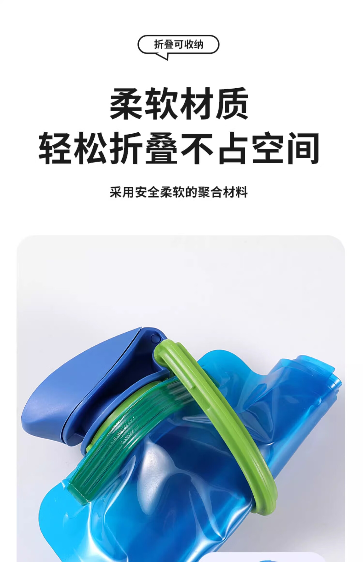 已收到,质量比想象中好很多,折叠起来特别小巧,塞包里完全不占地方。户外徒步带着很方便,装满水也没异味,清洗也简单。唯一就是容量稍微小了点,其他都很满意。