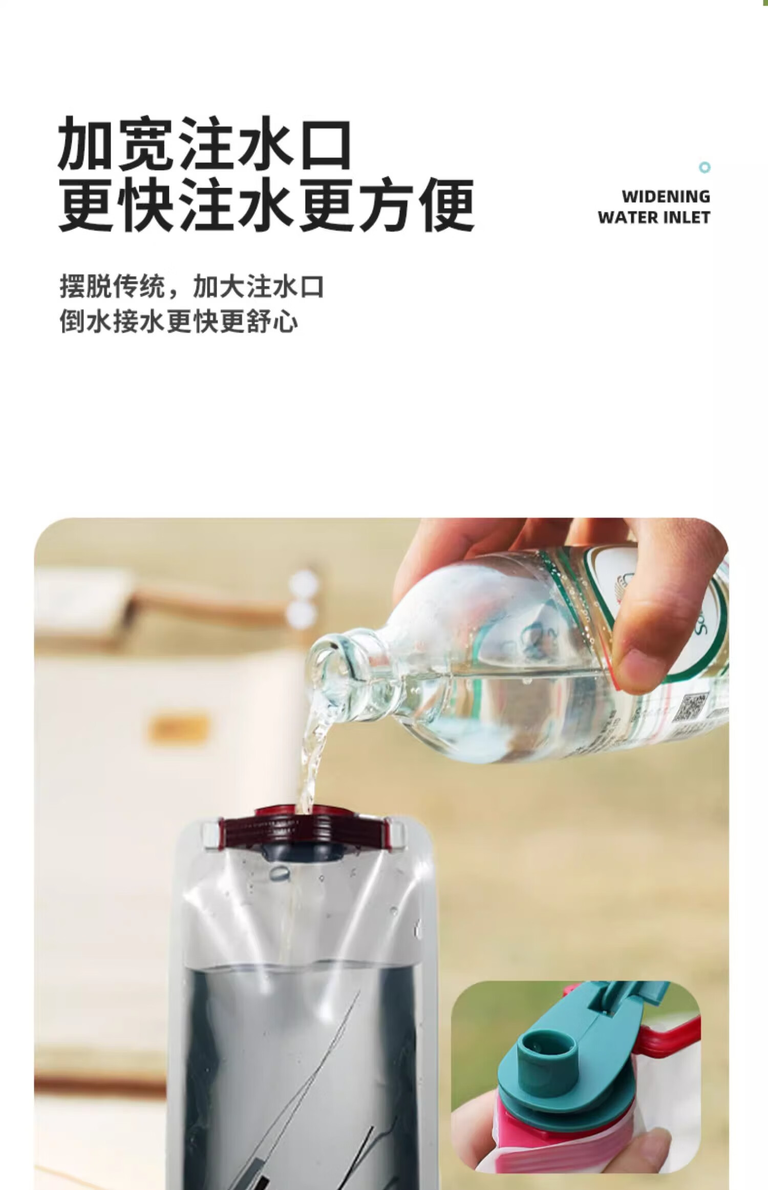 挺不错,户外旅行神器!折叠设计方便携带,不占地方。容量够大,装满水够喝一整天。材质结实耐用,没有异味。清洗也方便,水一冲就干净。露营徒步带上它,随时补水超省心。