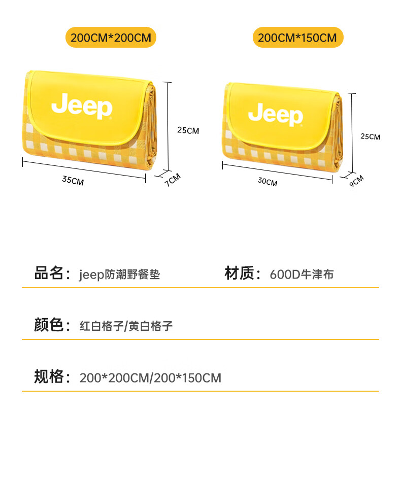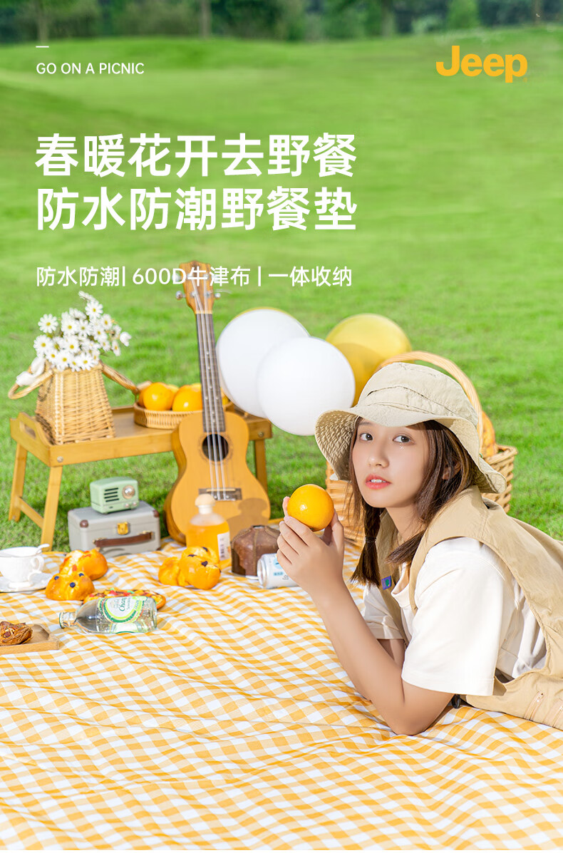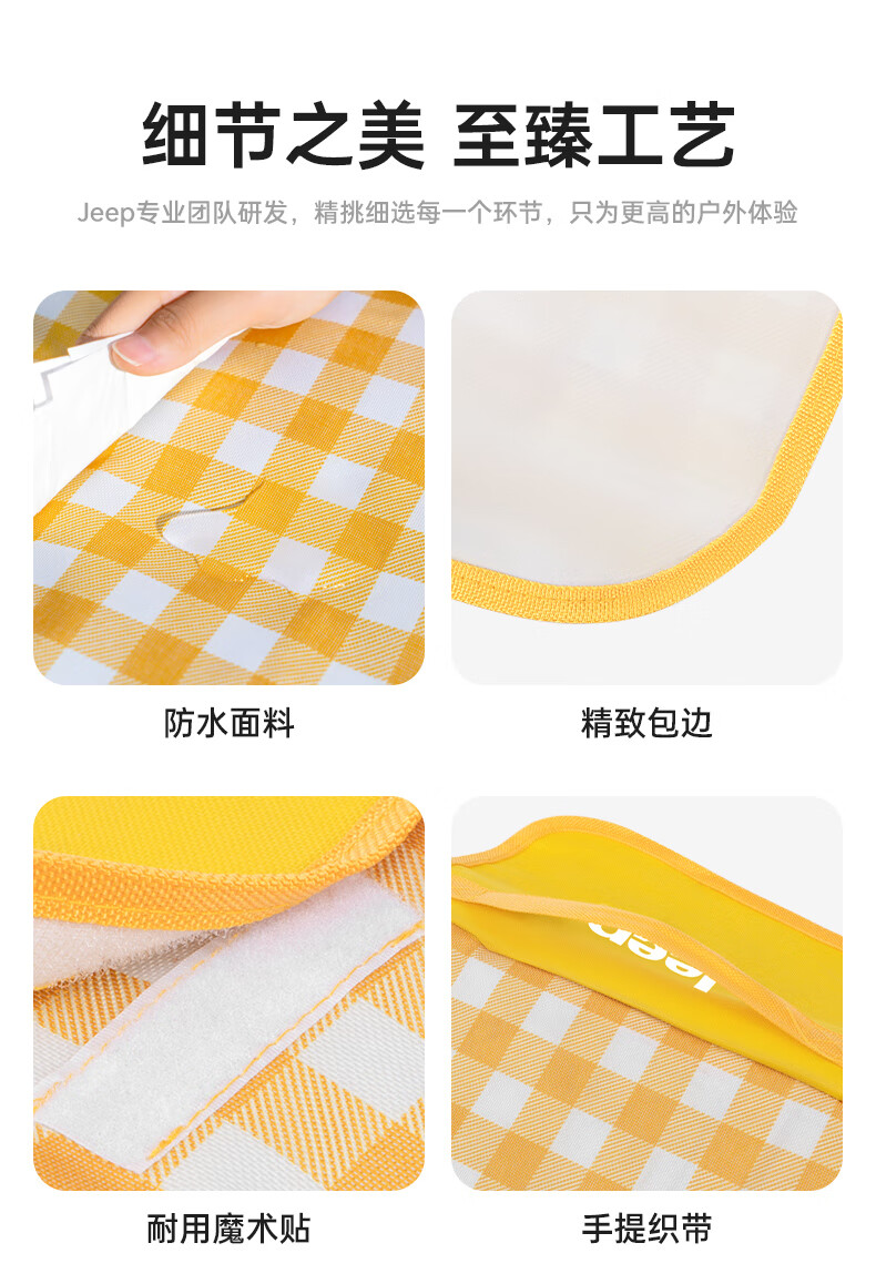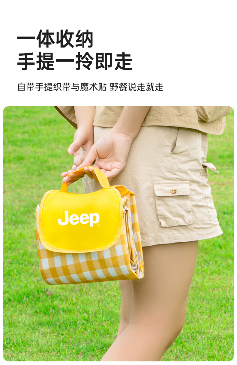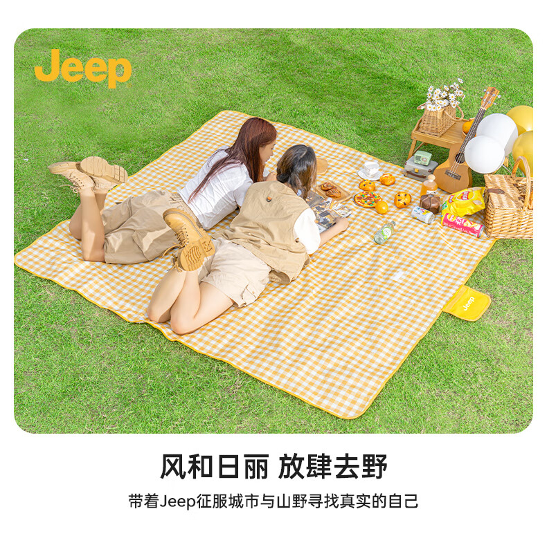 JEEP野餐垫野外郊游防潮垫子户外折叠便携防水加厚野炊地垫 黄白格2*2m