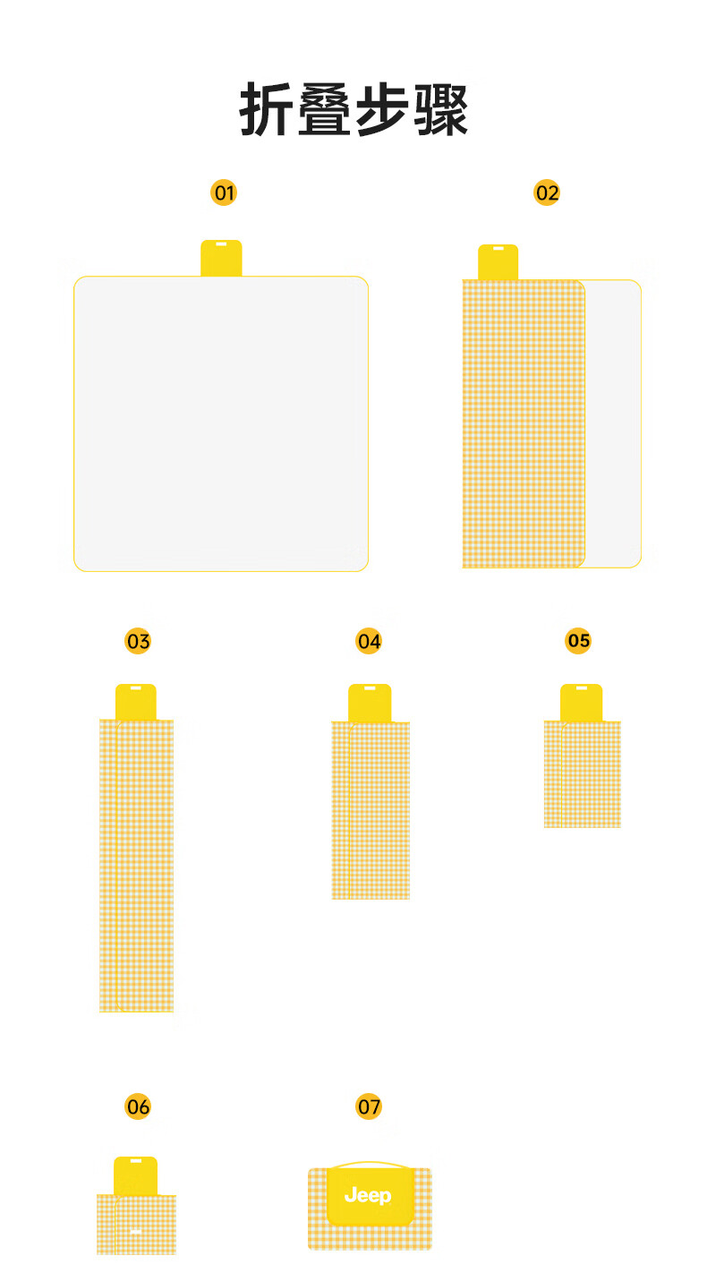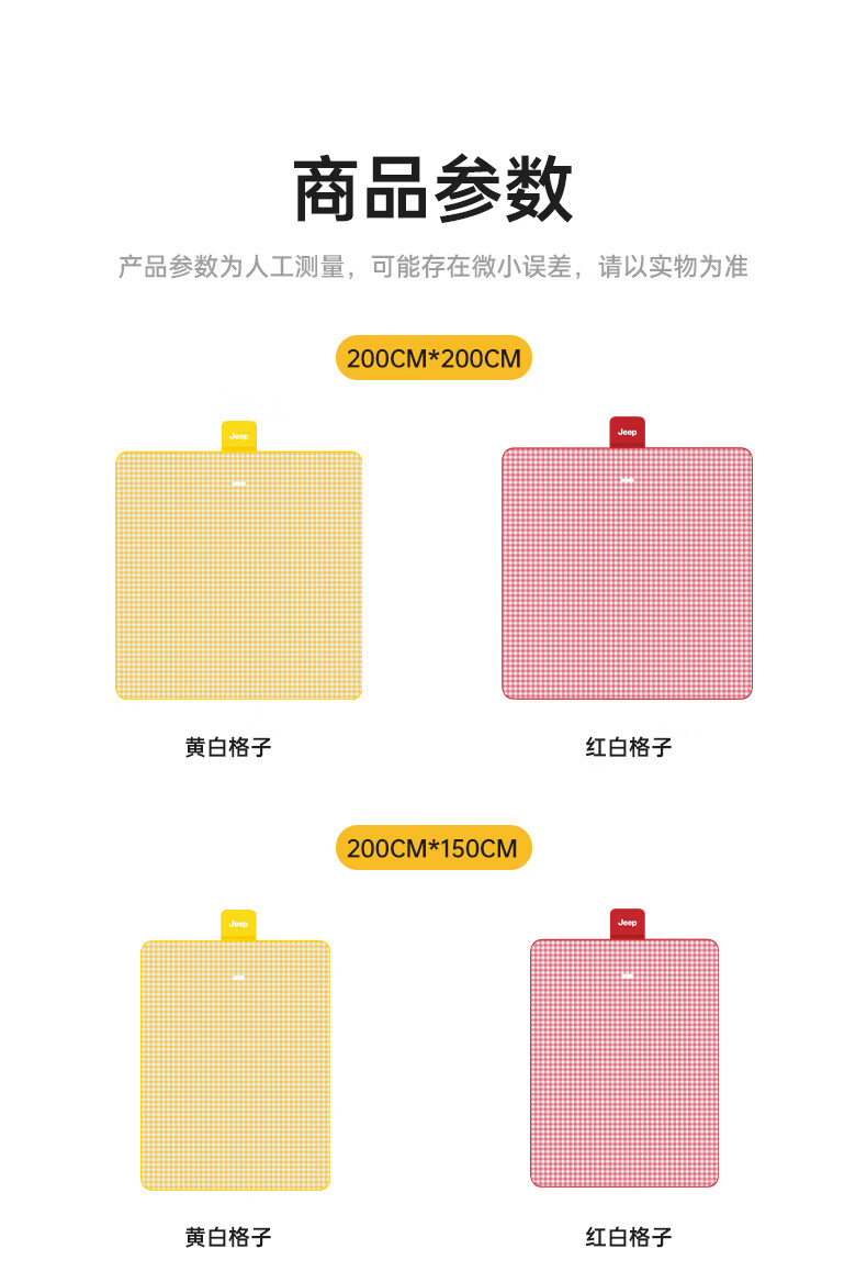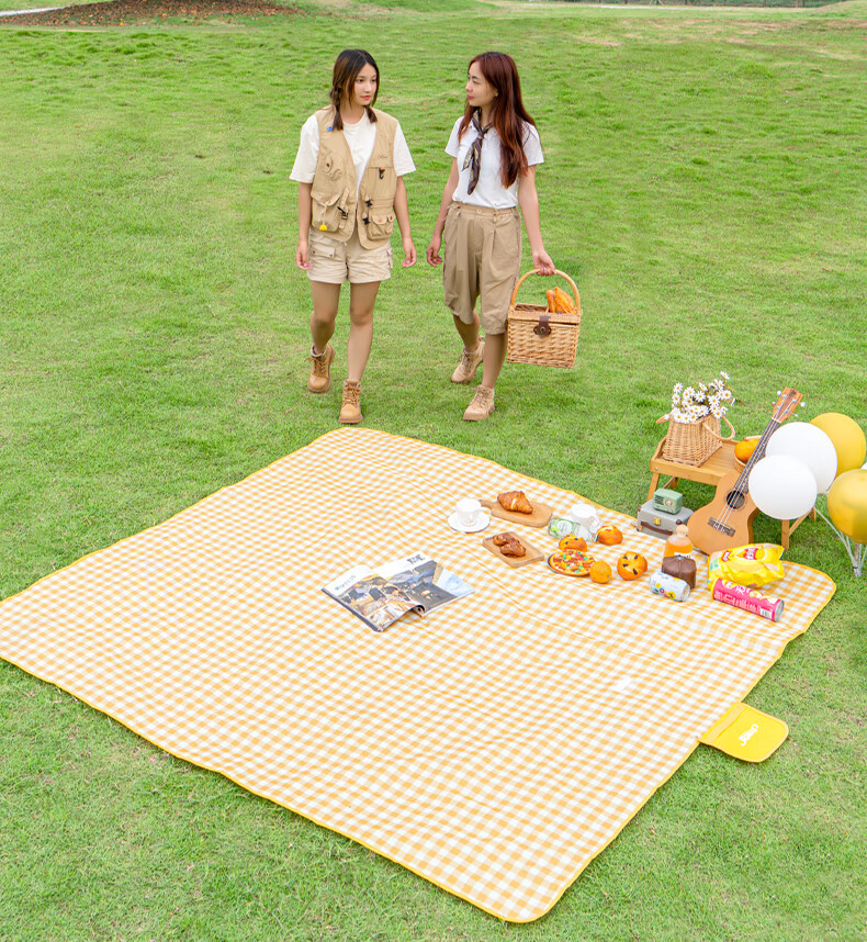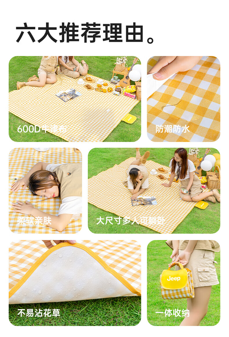 JEEP野餐垫野外郊游防潮垫子户外折叠便携防水加厚野炊地垫 黄白格2*2m