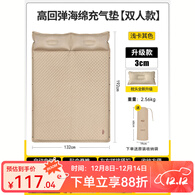 原始人露营充气床垫户外睡垫便携自动气垫床家用地铺野营帐篷地垫 双人款3cm自动充气垫【浅卡其】
