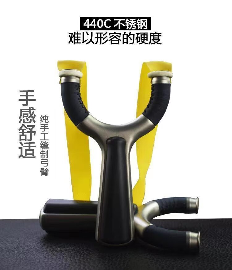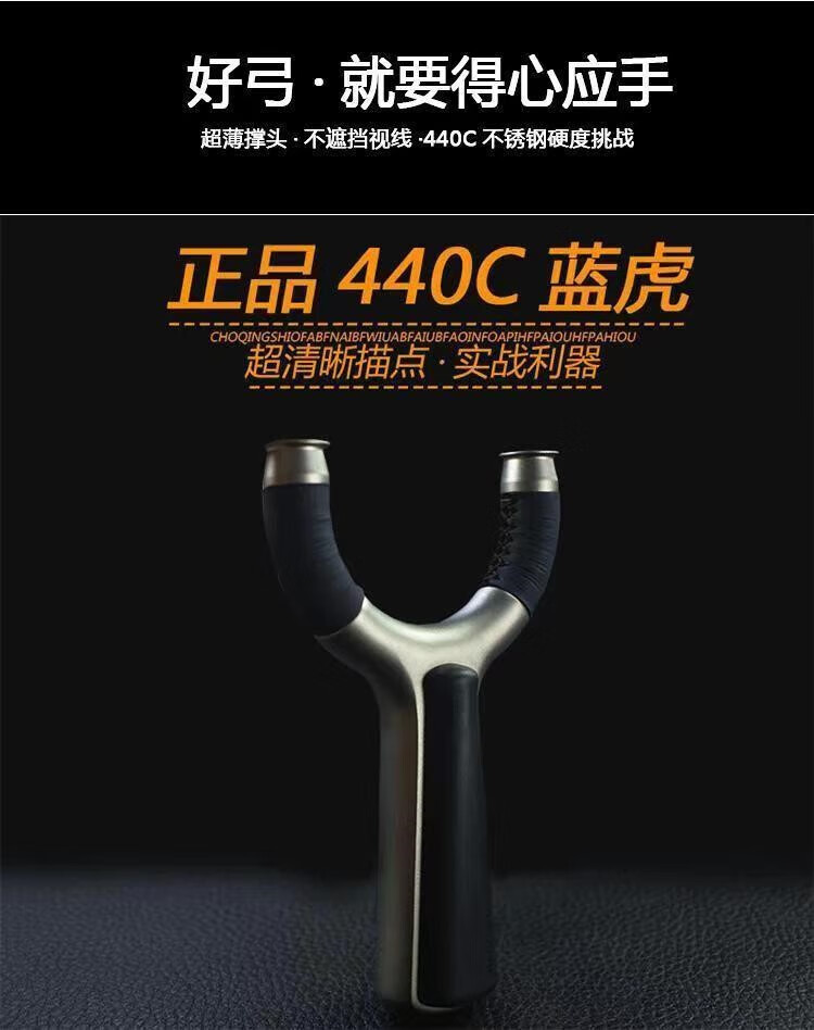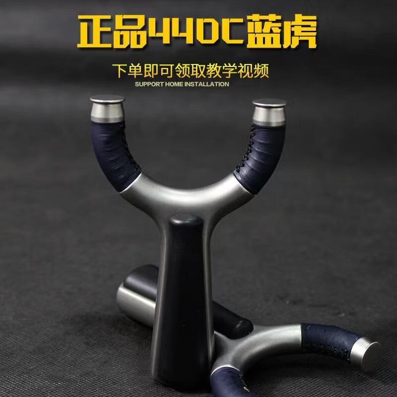 高精准弹弓飞虎圆头440C不锈钢蓝虎弹弓架户外竞技实战弹射扁皮弓 70弓门套餐