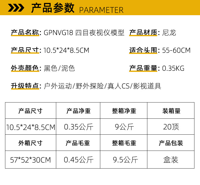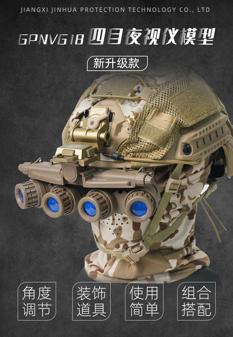 BOOIU仿真GPNVG18M四目夜视仪模型无功能户外真人COS战术头盔配件装备 沙色尼龙翻斗车+四目夜视仪模型