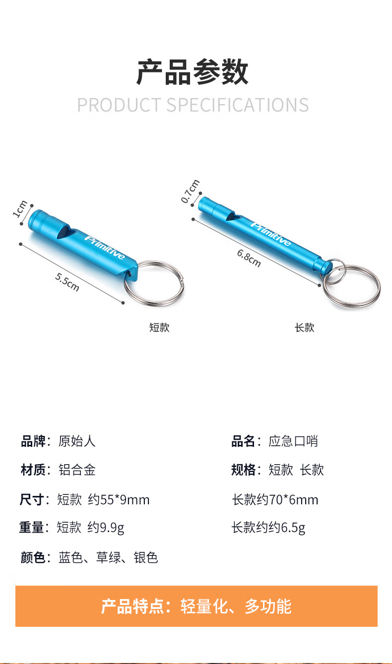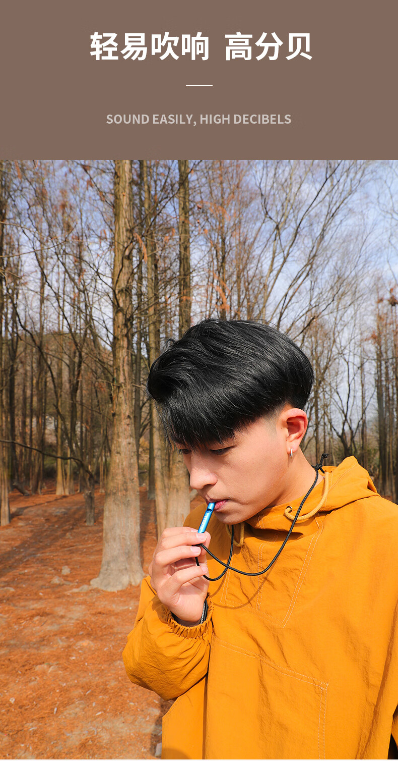 原始人哨子高音超响金属求生哨高端口哨乐器户外口哨报警哨子 卡其色短款
