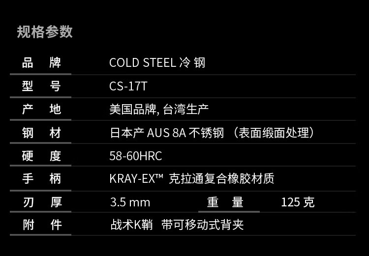 COLD STEEL 美国冷钢ColdSteel训练刀卡巴1217塑钢产品热塑橡胶练习使用 冷钢 92R39LSF 〔塑钢〕