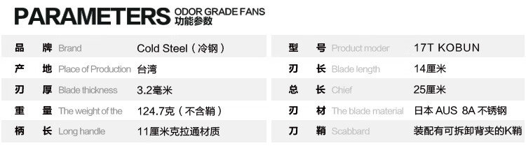COLD STEEL美国coldsteel冷钢17t白KOBUN日式短刀防身战术户外直刀 户外 17T 全刃